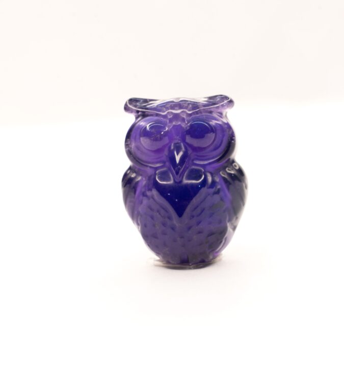 In Indian tradition, the *owl is believed to be the vahan (vehicle) of Goddess Lakshmi*, symbolizing wisdom, awareness, and protection of wealth. While Lakshmi ji blesses with abundance, the owl ensures it is preserved with patience and clarity. \n \nCarved from *Amethyst*, a crystal known for its calming and mind-cleansing energy, this owl helps reduce overthinking, improve focus, and create a peaceful aura. Amethyst connects with the crown chakra, supporting better decision-making and emotional healing. \n \nKeep this owl near your work desk, study area, or pooja space. It's perfect for those seeking mental clarity, spiritual grounding, and a quiet reminder to trust their inner wisdom—especially in matters of money, mindset, or life direction.