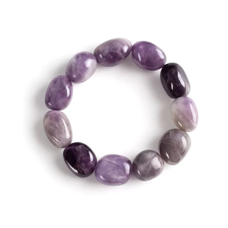 The Amethyst Tumble Bracelet is crafted from natural amethyst stones, known as the stone of peace and spirituality. With its rich violet hues and smooth tumble finish, this bracelet is not only a beautiful accessory but also a source of positive energy. Amethyst is highly regarded for its ability to reduce stress, promote relaxation, and bring mental clarity. It is often used in meditation to deepen spiritual awareness and connect with higher consciousness. Wearing this bracelet can help balance emotions, protect against negative energies, and support overall well-being. A perfect blend of elegance and healing, this bracelet is suitable for everyday wear, gifting, or spiritual practices.