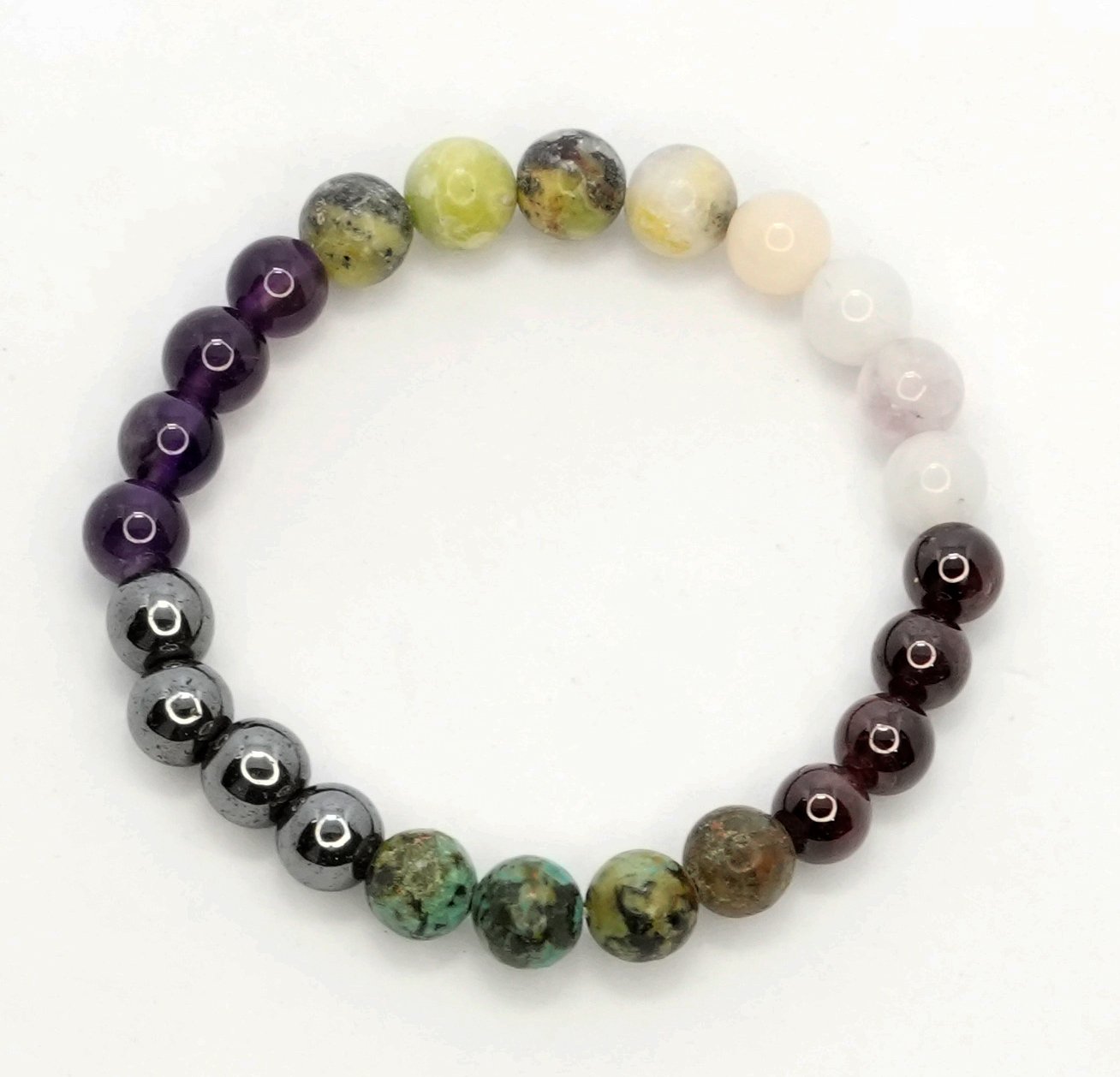 Amethyst: Enhances stability, sharpens insight, and helps Aquarians visualize situations more effectively. \n Serpentine: Provides motivation, clears emotional baggage, and restores peace and calm. \n Pink Morganite: Relieves stress, soothes the nerves, and brings emotional balance. \n Magnetite: Attracts positive energy and supports emotional grounding and balance. \n African Turquoise: Encourages clear-headed thinking and balanced decision-making. \n Garnet: Offers protective energy and strengthens Aquarius-born individuals.