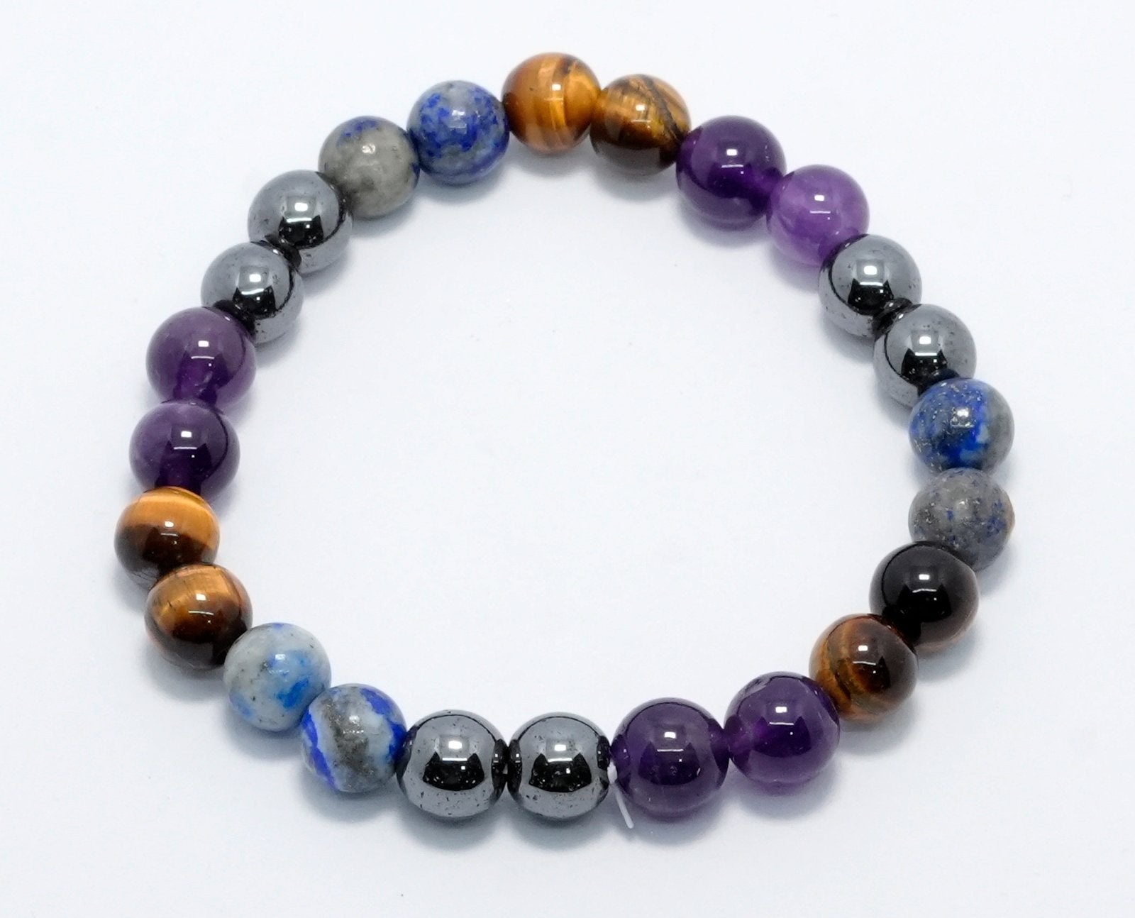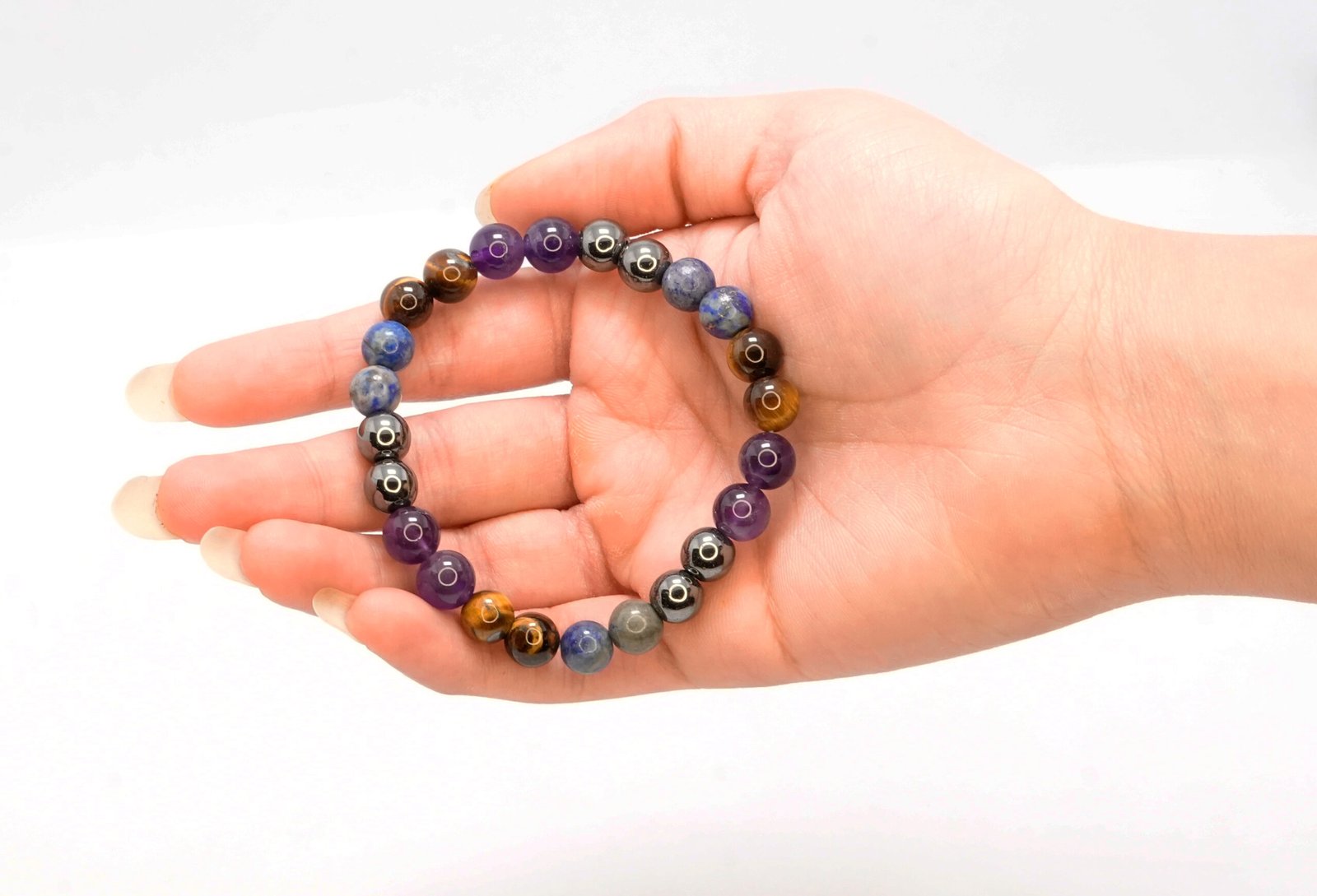 Hematite : Grounding energy, relieves pain, and improves circulation, aiding in muscle recovery. \n \nAmethyst : Calms nerves, reduces tension, and promotes healing in the body and mind. \n \nTigers Eye: Alleviates stress, enhances strength, and promotes balance and physical healing \n \nLapis Lazuli : Soothes discomfort, enhances relaxation, and provides emotional support during physical recovery. \n \n \n \nThis is just a spiritual support - its not meant to replace any medical advice or treatment. \n \n \n \n