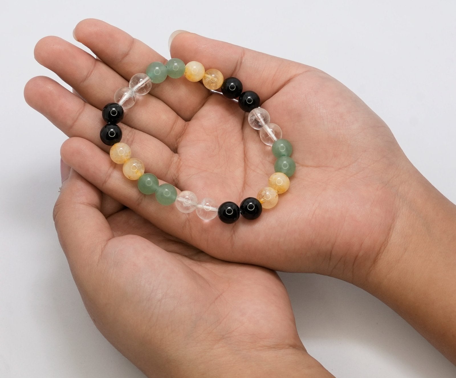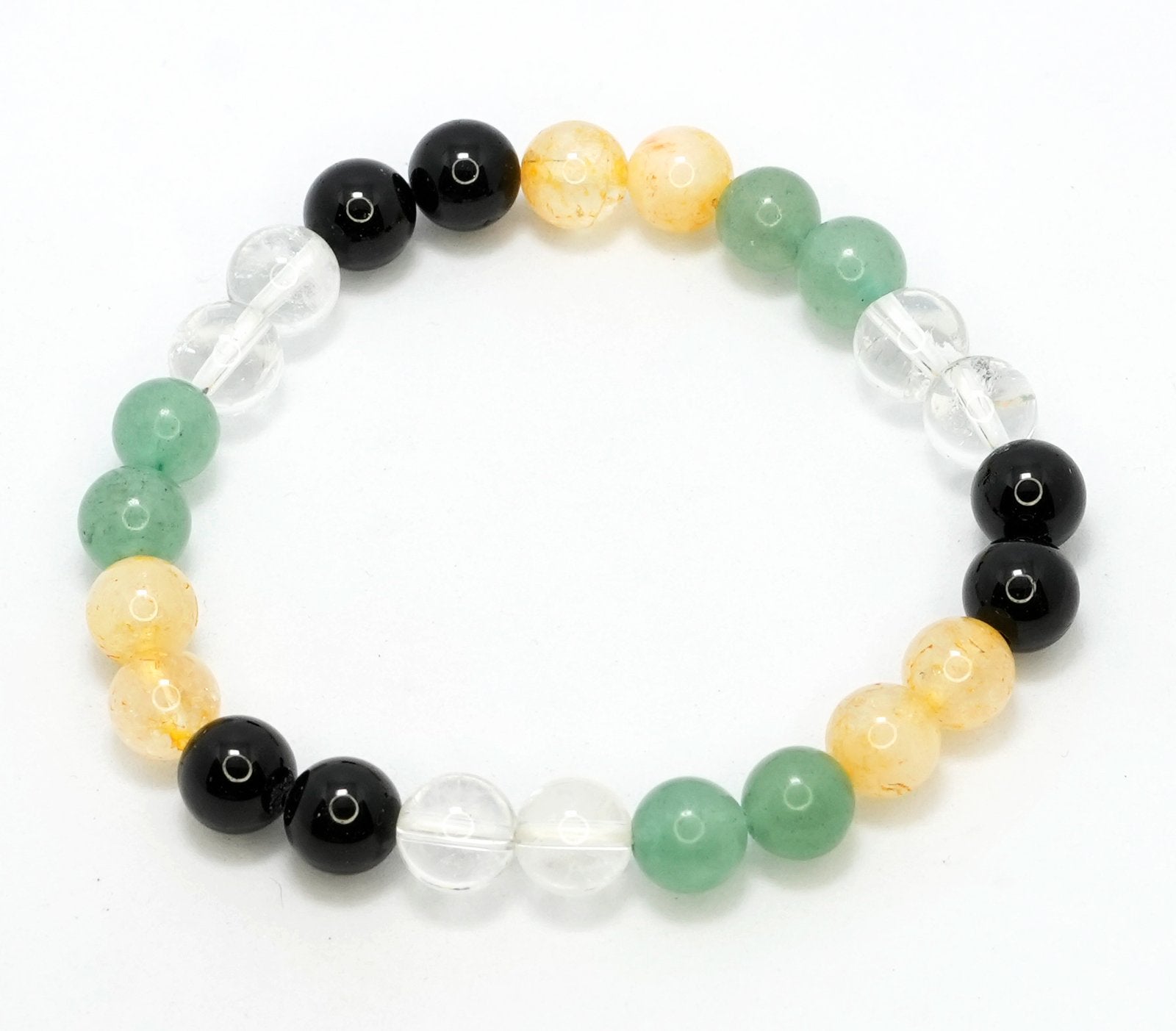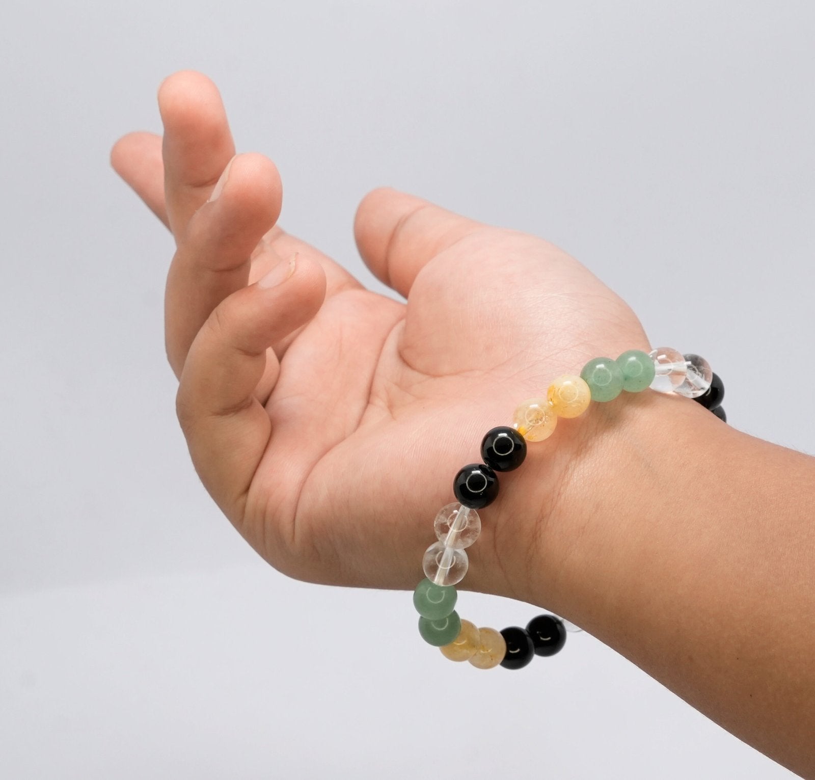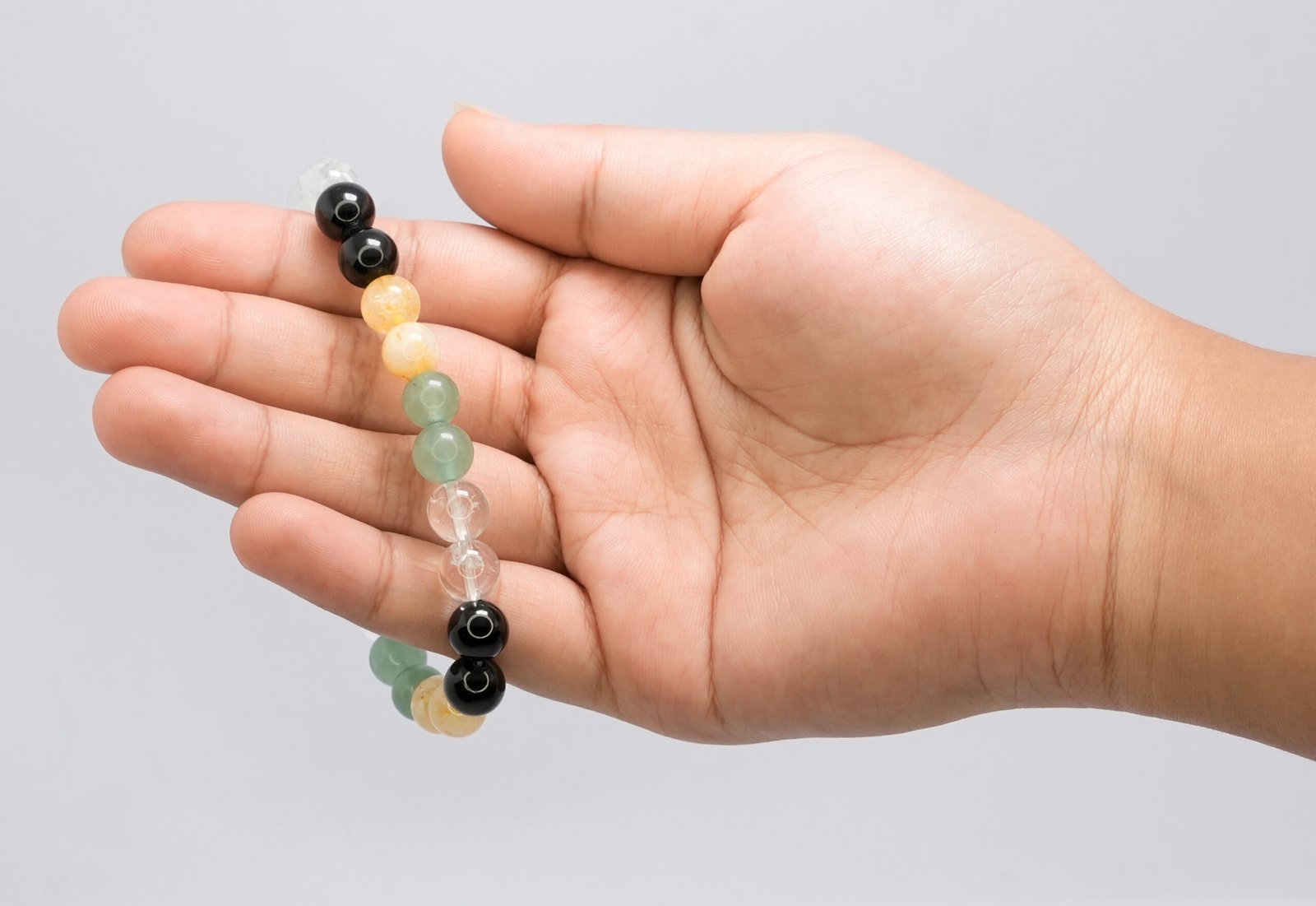 Green Aventurine: Attracts luck, encourages growth, promotes optimism, and supports emotional and physical healing \nBlack Tourmaline: Protects against negativity, grounds energy, alleviates anxiety, and promotes emotional stability and balance \nCitrine: Attracts abundance, boosts creativity, enhances motivation, and promotes joy and positive energy. \nClear Quartz: Amplifies energy, enhances clarity, promotes healing, and boosts positive intentions effectively. \n \n \n \nThis is just a spiritual support - its not meant to replace any medical advice or treatment.