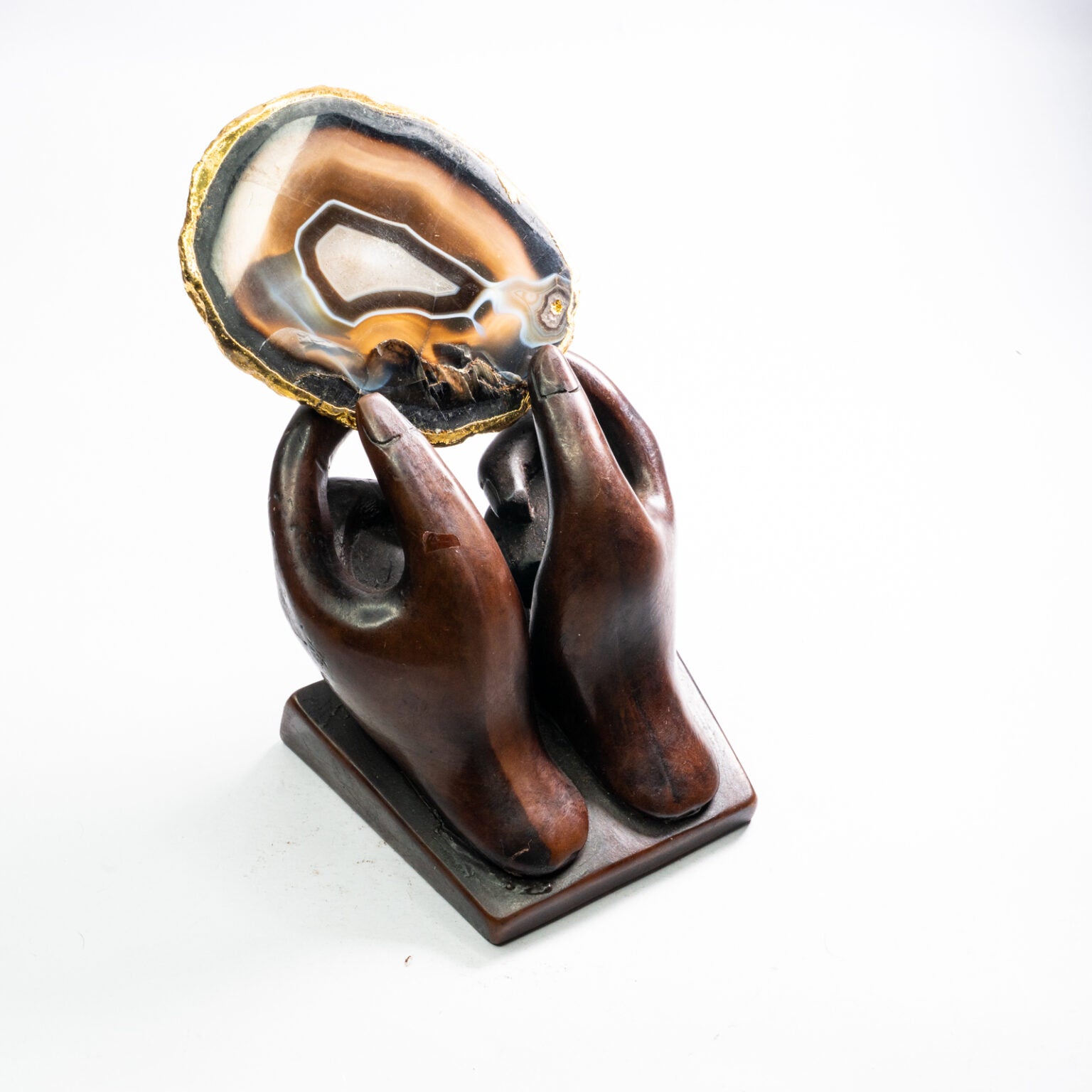 This large piece of brown agate displays rich, warm tones and deep layers. Ideal as a spiritual tool, desk accent, or centrepiece. Stone of Energy was dispersed by the ground.,Increases stability and focus