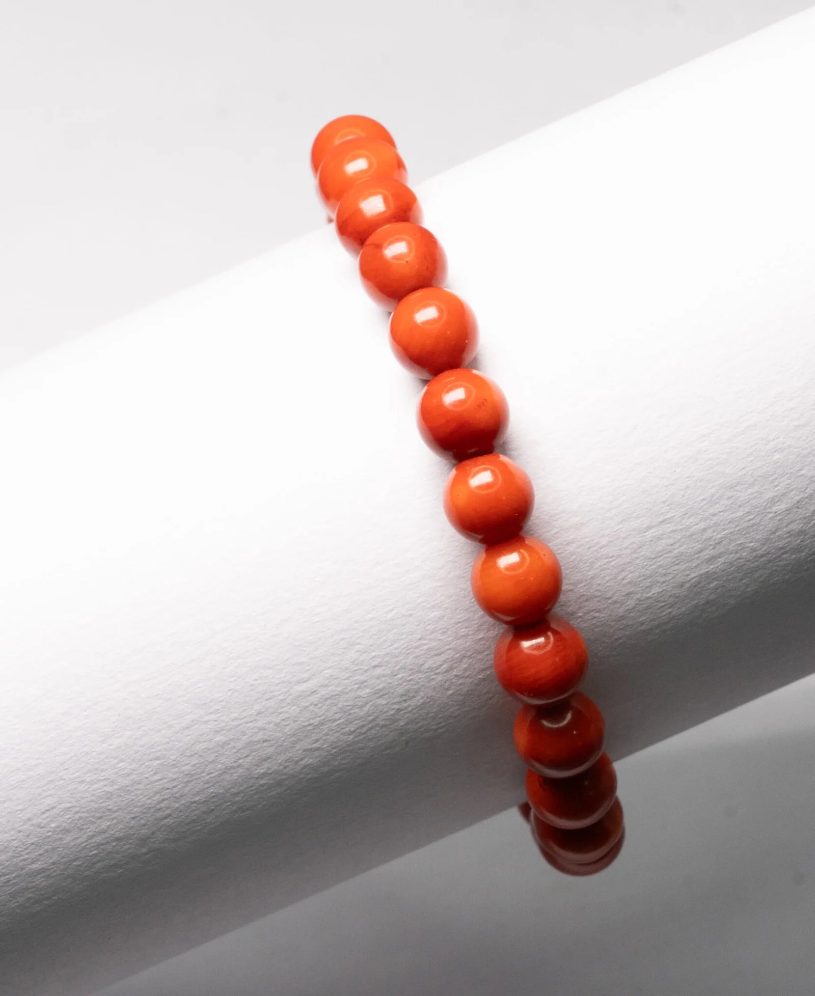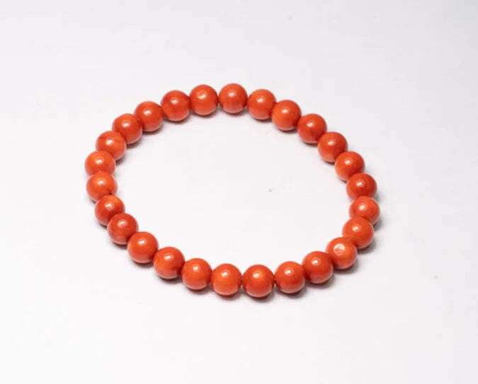 \nOur Coral Bracelet features polished, cylindrical beads that are both bold and comfortable to wear. The warm, rich tones make it an eye-catching accessory, whether paired with traditional or modern attire. Wearing this bracelet not only adds a pop of color but also serves as a reminder to stay passionate, resilient, and confident in your endeavors.