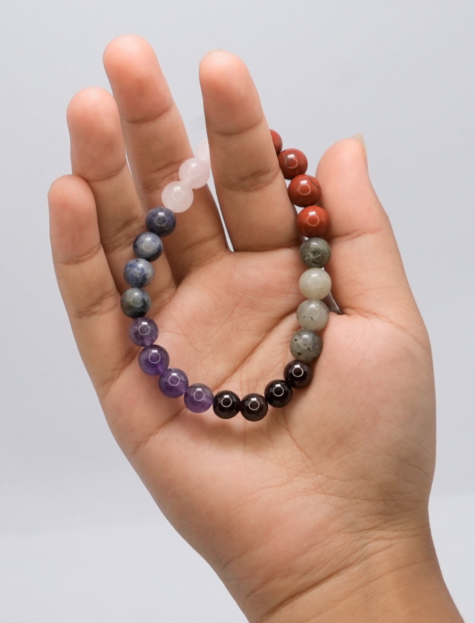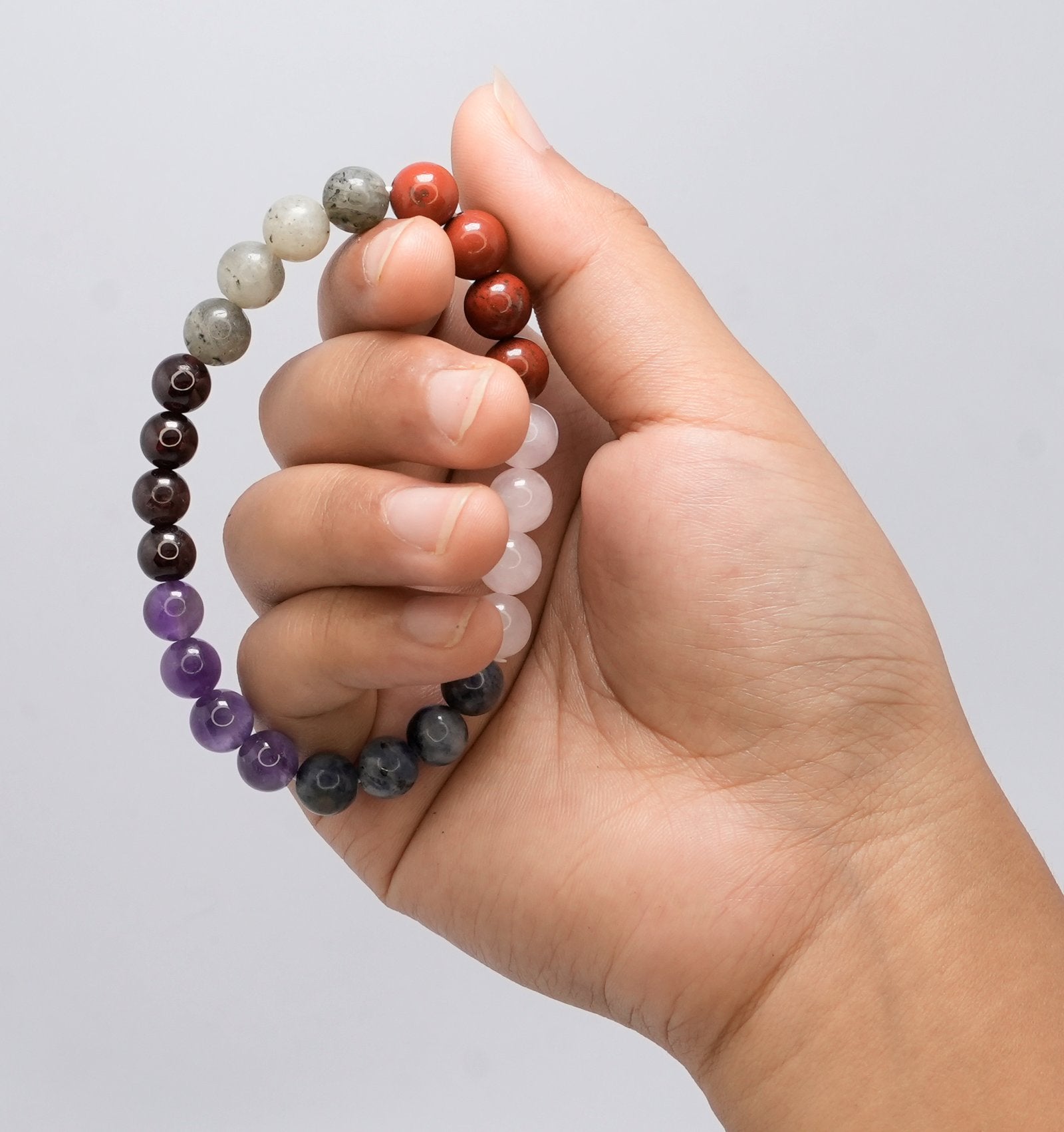 Labradorite: Clears negative emotions and enhances focus encouraging balanced thinking, inner wisdom, and mental clarity.