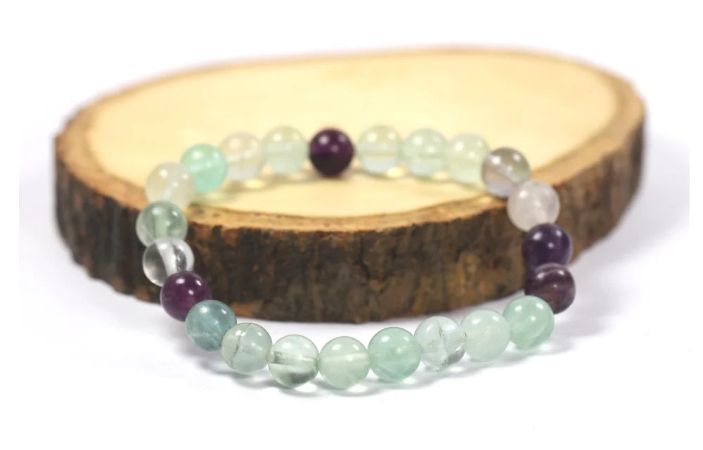 \nOur Fluorite Bracelet features smooth, polished beads that beautifully showcase the stone’s natural patterns and colors. Comfortable for everyday wear, this bracelet helps maintain a calm and focused mindset, especially during challenging situations. Whether you’re working, studying, or meditating, wearing this bracelet serves as a gentle reminder to stay clear-headed and balanced.