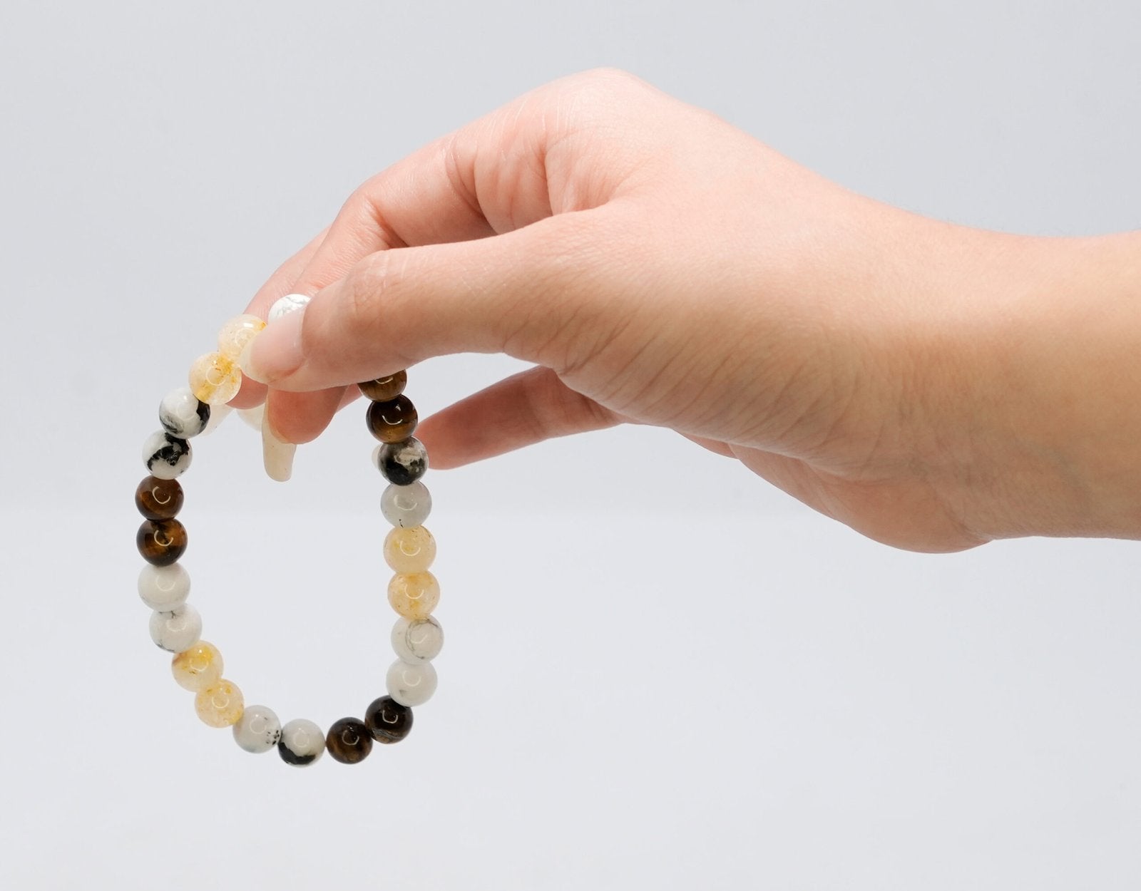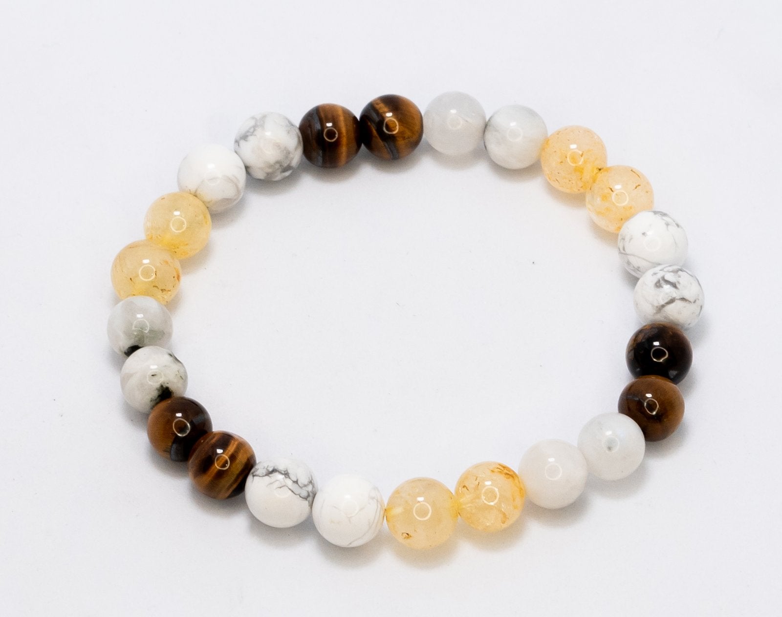 Citrine: Known for boosting confidence and sparking creativity, Citrine energizes Geminis lively and social nature. \nHowlite: A calming stone that reduces stress and anxiety, Howlite promotes patience and emotional balance. \nTigers Eye: This grounding gemstone supports Geminis by sharpening focus and improving decision-making. \nMoonstone: Connected to intuition and emotional insight, Moonstone encourages Geminis to embrace new beginnings \n \n \n \nThis is just a spiritual support - its not meant to replace any medical advice or treatment.