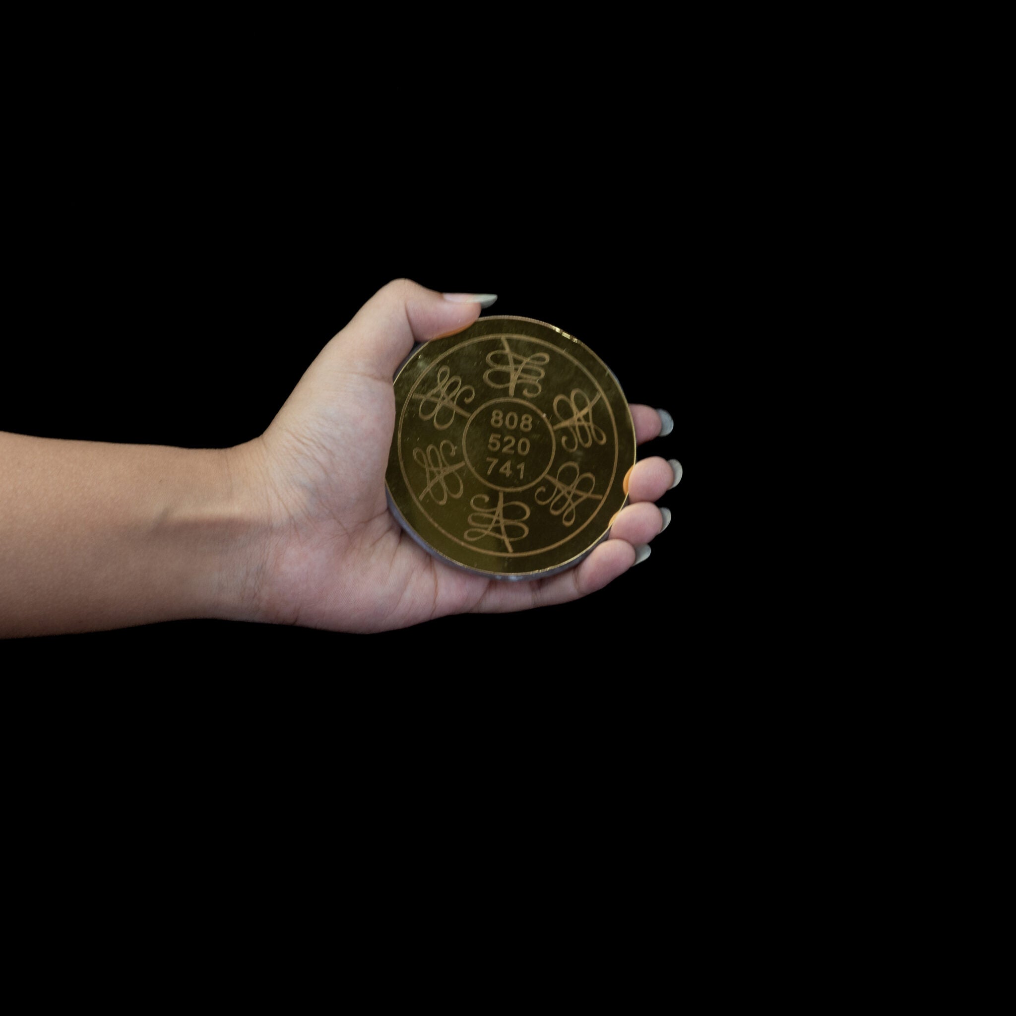 This unique Gold Selenite Plate is more than just a spiritual tool—it's a portal to manifesting abundance. Selenite, the stone of cleansing and high vibration, naturally purifies energy and enhances clarity. When paired with the sacred Grabovoi Code 808 520 741—known for attracting financial abundance and wealth—it becomes a powerful manifestation aid.Beautifully polished with a mirror-like gold finish, this plate is engraved with divine symbols that activate healing and alignment. The circular shape allows energy to flow evenly, making it perfect for intention setting, placing crystals, or even using as a base for your wallet, water bottle, or sacred items.Use it during your manifestation rituals, keep it in your workspace, or gift it to someone on a journey of abundance. It’s not just a product—it’s a spiritual investment.