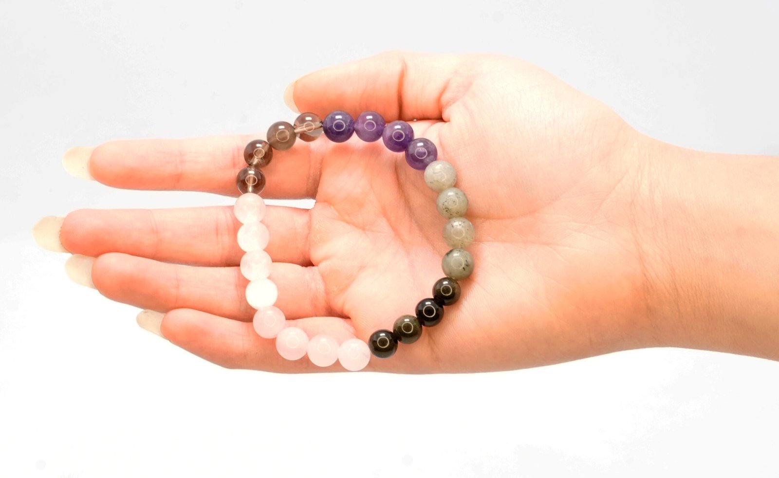 Amethyst: Relieves anxiety by reasserting boundaries and objectivity, helping to bring clarity and calm to the mind.