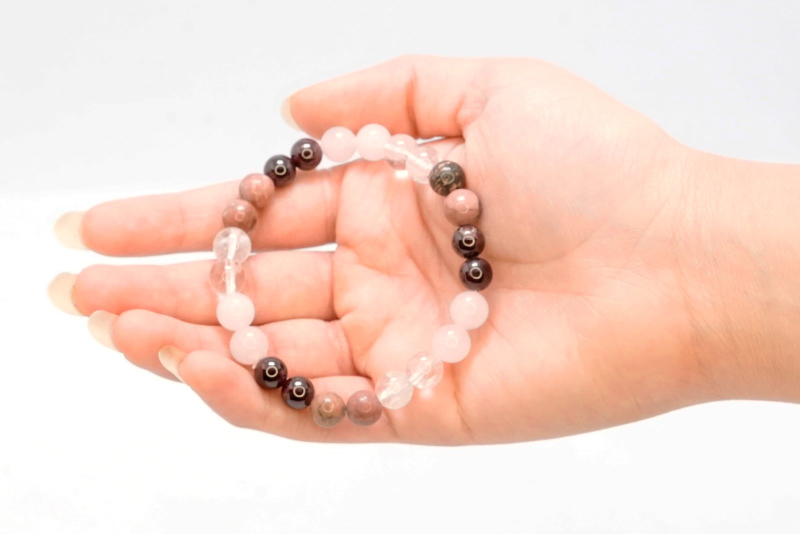 Garnet : Stimulates passion, commitment, and loyalty, strengthening the bond between partners. \n \nRose Quartz : Enhances love, compassion, and emotional healing, promoting harmony in relationships. \n \nClear Quartz : Amplifies energy, clarity, and healing, supporting communication and understanding in marriage. \n \nRhodonite : Encourages forgiveness, emotional healing, and balance, helping to resolve relationship conflicts. \n \nThis is just a spiritual support - its not meant to replace any medical advice or treatment. \n \n \n \n