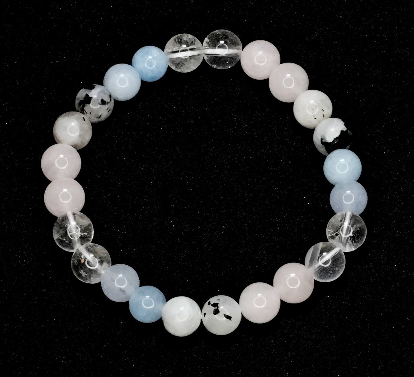 Moonstone: Enhances intuition, stabilizes emotions, and nurtures spiritual connection and inner wisdom.