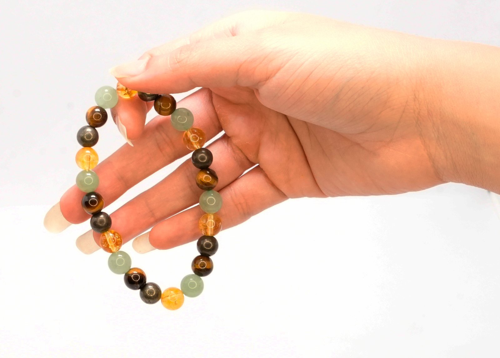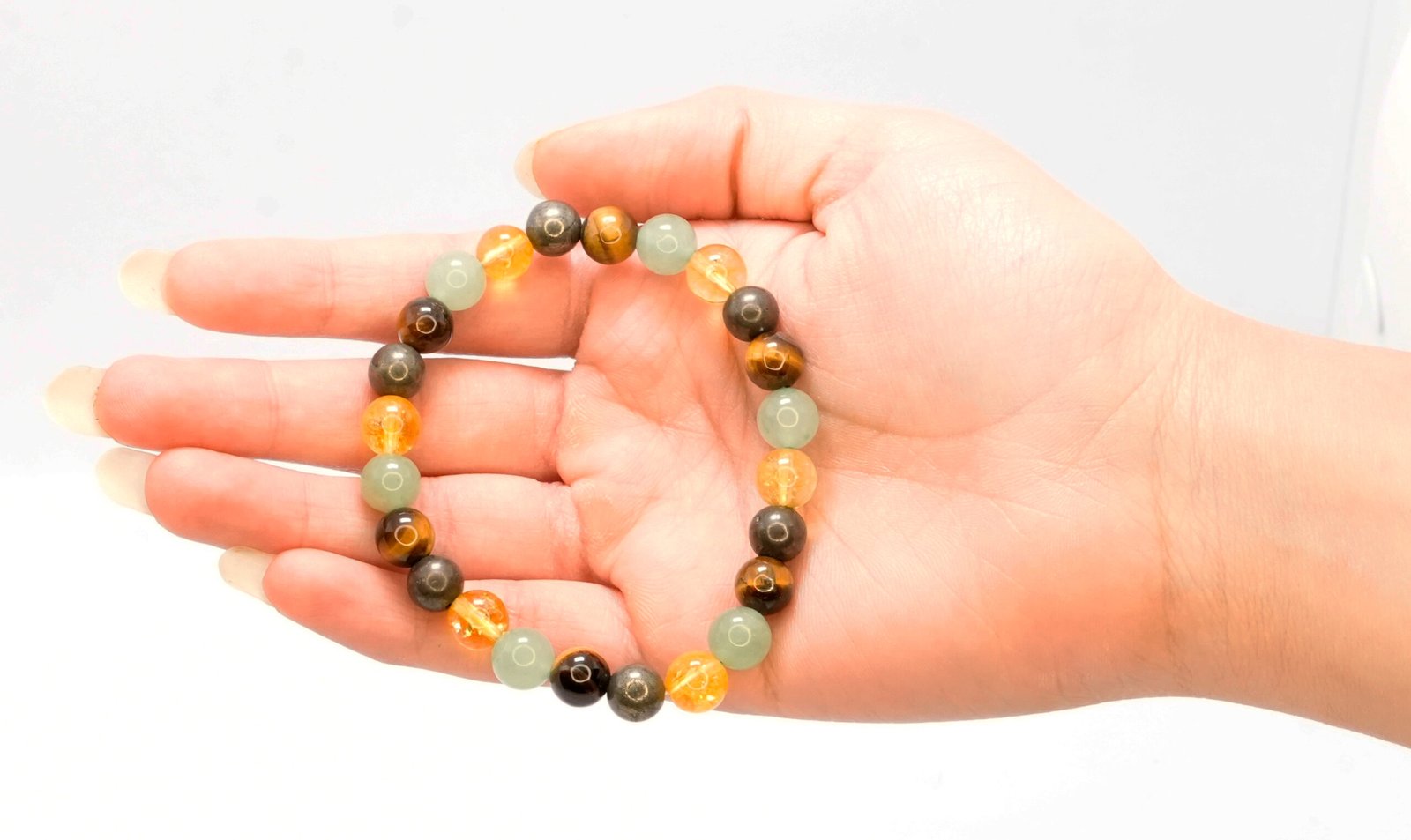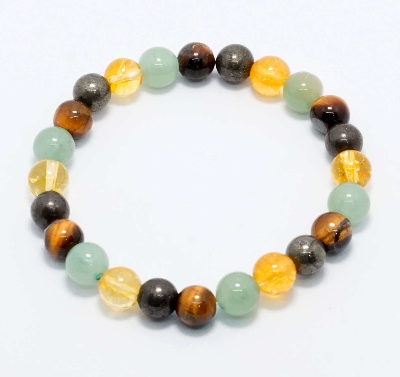 Pyrite : Inspires ambition, attracts wealth opportunities, projects, finances, and strengthens determination \n \nCitrine: Boosts motivation and creativitry, attracts wealth, and fosters a positive, abundant mindset \n \nTigers eye: Enhances courage and confidence, attracts financial success improves focus on business goals \n \nGreen Aventurine : promotes prosperity, luck and optimism while supporting clear decision making for business growth \n \nThis is just a spiritual support - its not meant to replace any medical advice or treatment. \n \n \n \n