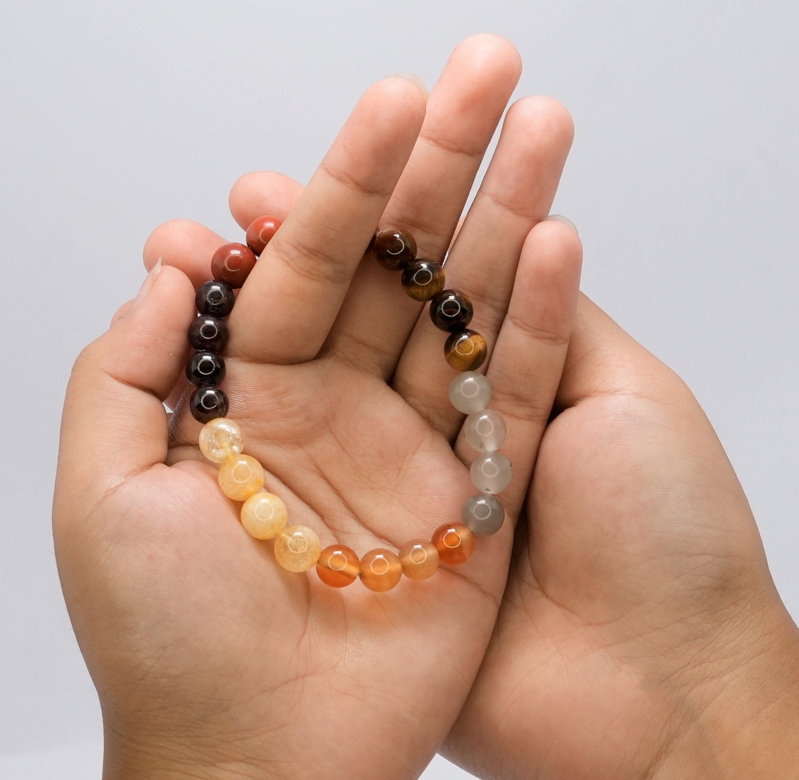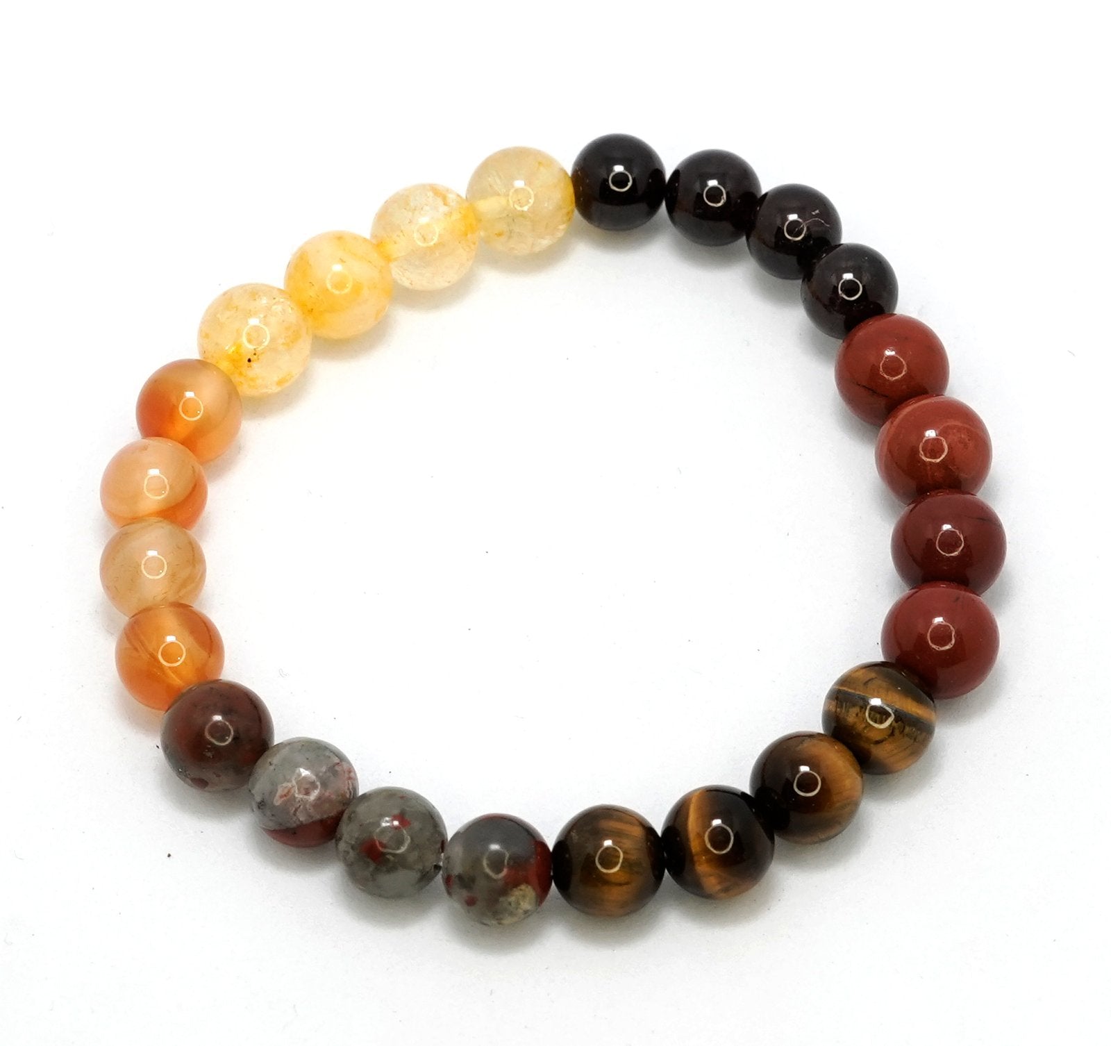 Blood Stone: It is a Strong Protection stone that can help fill you with confidence and the energy. \n \nCarnelian: Is bursting with creativity, confidence and passion radiates positive energy. \n \nCitrine: Associated with prosperity, success and abundance, Promote optimism joy. \n \nTiger Eye: Stone of Vitality and Strength. Provide protection and enhances integrity. \n \nRed Jasper: A strong stone that inspires stability and personal power. Stabilize thought and aura. \n \nGarnet: Is filled with robust energy that stabilizes and invigorates. Provide a sense of security