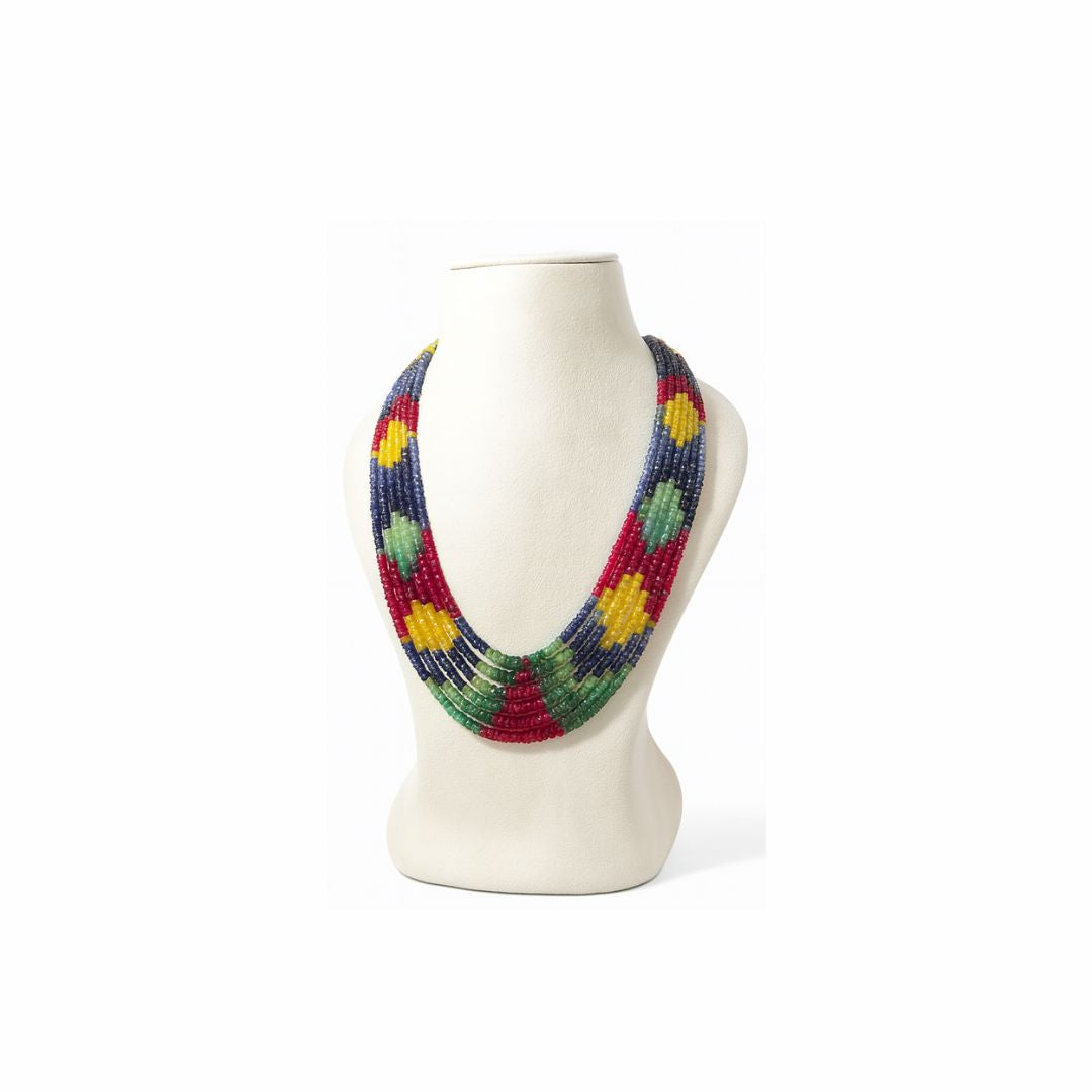 Beautiful Semi Precious 7 Layer Mala with Stones i.e Emerald, Blue Sapphire, Ruby, Yellow Sapphire | Hand Made Mala | 5 Layer Mala.