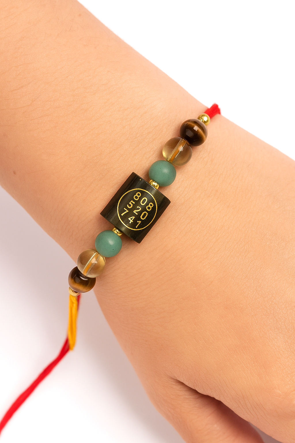 The Natural Pyrite Zibu Crystal Rakhi beautifully combines crystal energy with the spiritual power of sacred Zibu symbols—angelic signs known to represent healing, love, peace, and divine connection. When worn as a Rakhi, it transforms into a sacred thread that radiates positive energy, emotional strength, and protection. Each symbol on the Rakhi carries its own vibrational message, helping the wearer feel guided, supported, and spiritually connected. Ideal for brothers who appreciate meaning beyond tradition, this Rakhi strengthens the emotional bond between siblings while offering peace, clarity, and energetic harmony. Whether tied with intention or kept as a talisman, the Zibu Crystal Rakhi is a thoughtful blend of beauty, spirituality, and unconditional love.