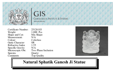 Sphatik, also known as clear quartz, is revered for its powerful cleansing and healing properties. It amplifies positive energy, calms the mind, and brings mental clarity. Associated with all chakras"especially the crown"it enhances focus, spiritual awareness, and overall balance in life. \n \nWhen carved in the sacred form of Lord Ganesh, the remover of obstacles and the symbol of wisdom, this Sphatik idol becomes a powerful tool for both spiritual and energetic cleansing. Lord Ganesh is known to bless new ventures, protect from hurdles, and offer guidance through life"s transitions. \n \nOur Sphatik Ganesh Ji idol is finely crafted to reflect light and clarity"both in form and energy. Place it on your altar, work desk, or meditation space to invite peace, protection, and divine support. Its cooling energy is also known to reduce stress and anxiety, making it ideal for daily worship or quiet reflection. \n \nA beautiful gift for housewarmings, spiritual milestones, or personal growth, this idol is a timeless symbol of purity and divine blessings.