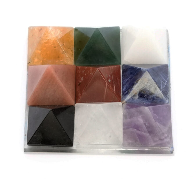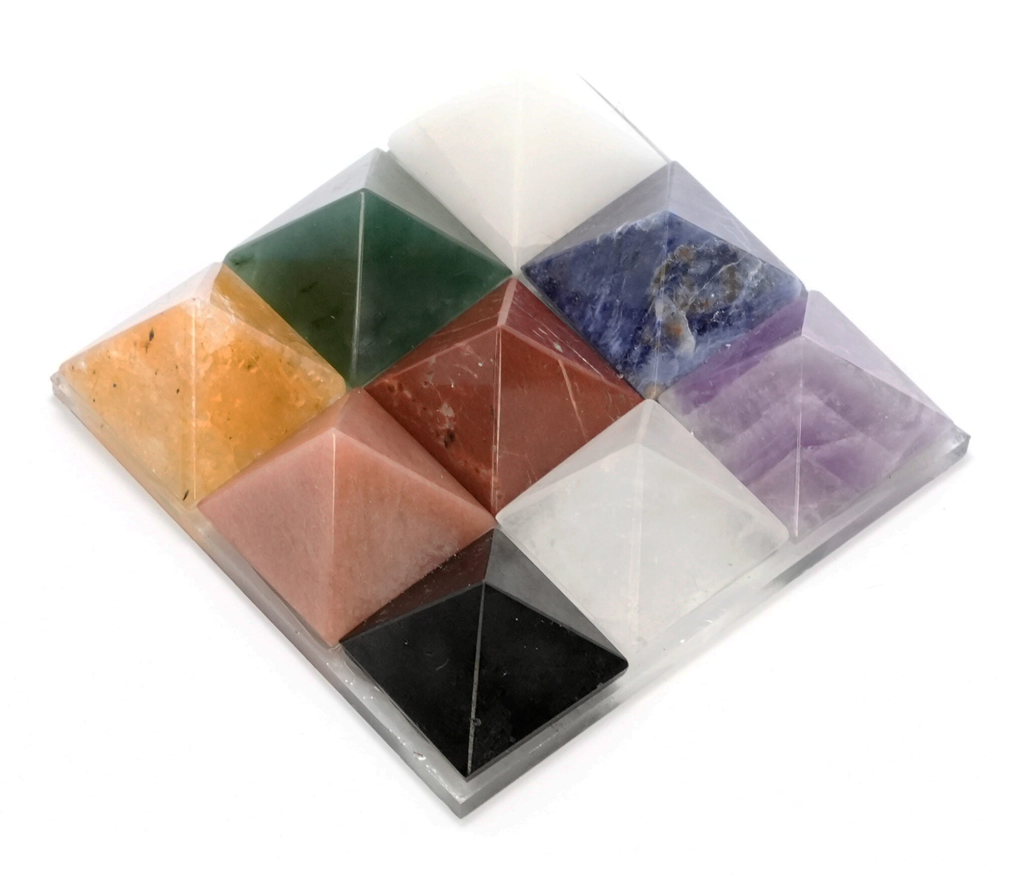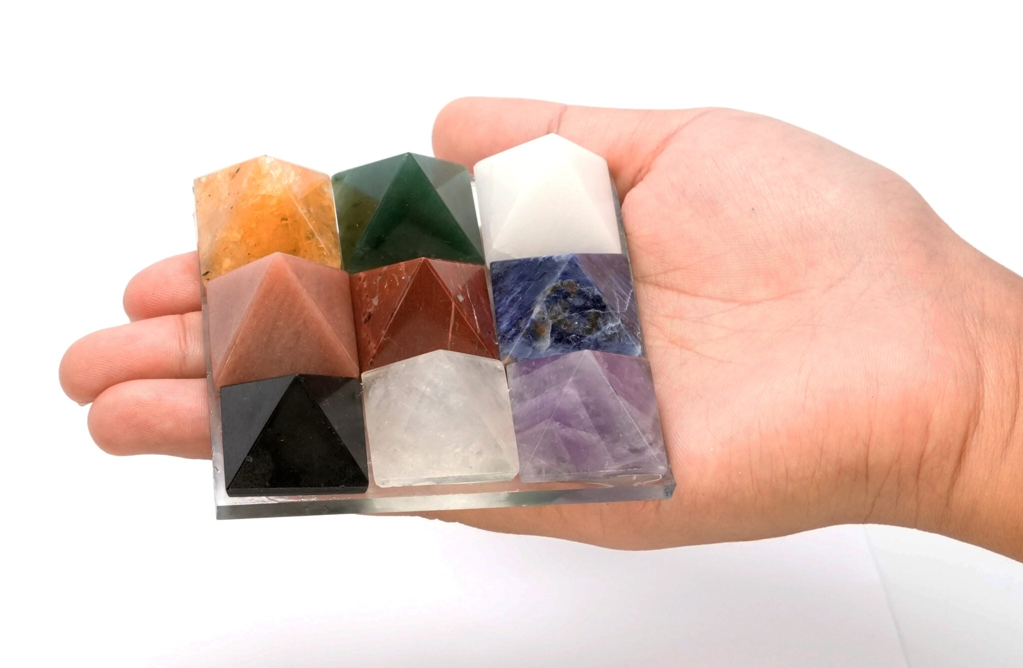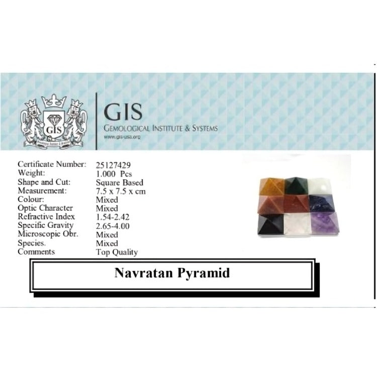 A Navratna small pyramid is believed to offer benefits related to Vastu, Feng Shui, and energy correction. It's said to remove negative energies, create a positive atmosphere, and attract luck and prosperity. The pyramid's shape is also believed to enhance the effects of the nine gemstones (Navratna) within, potentially improving overall well-being. Vastu/Feng Shui CorrectionThe pyramid is believed to address Vastu/Feng Shui imbalances by removing negative energies and promoting positive energy flow. ,Energy Enhancement:The nine gemstones (Navratna) within the pyramid are thought to amplify and harmonize energies, potentially leading to improved health, relationships, and overall well-being.