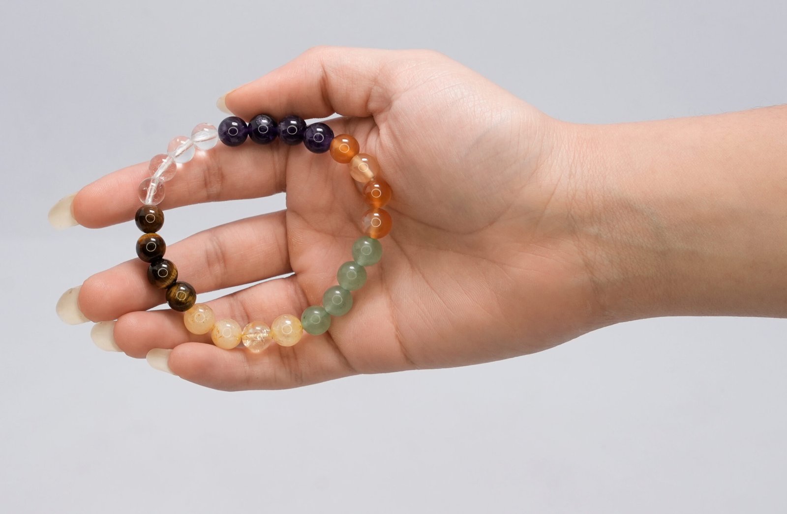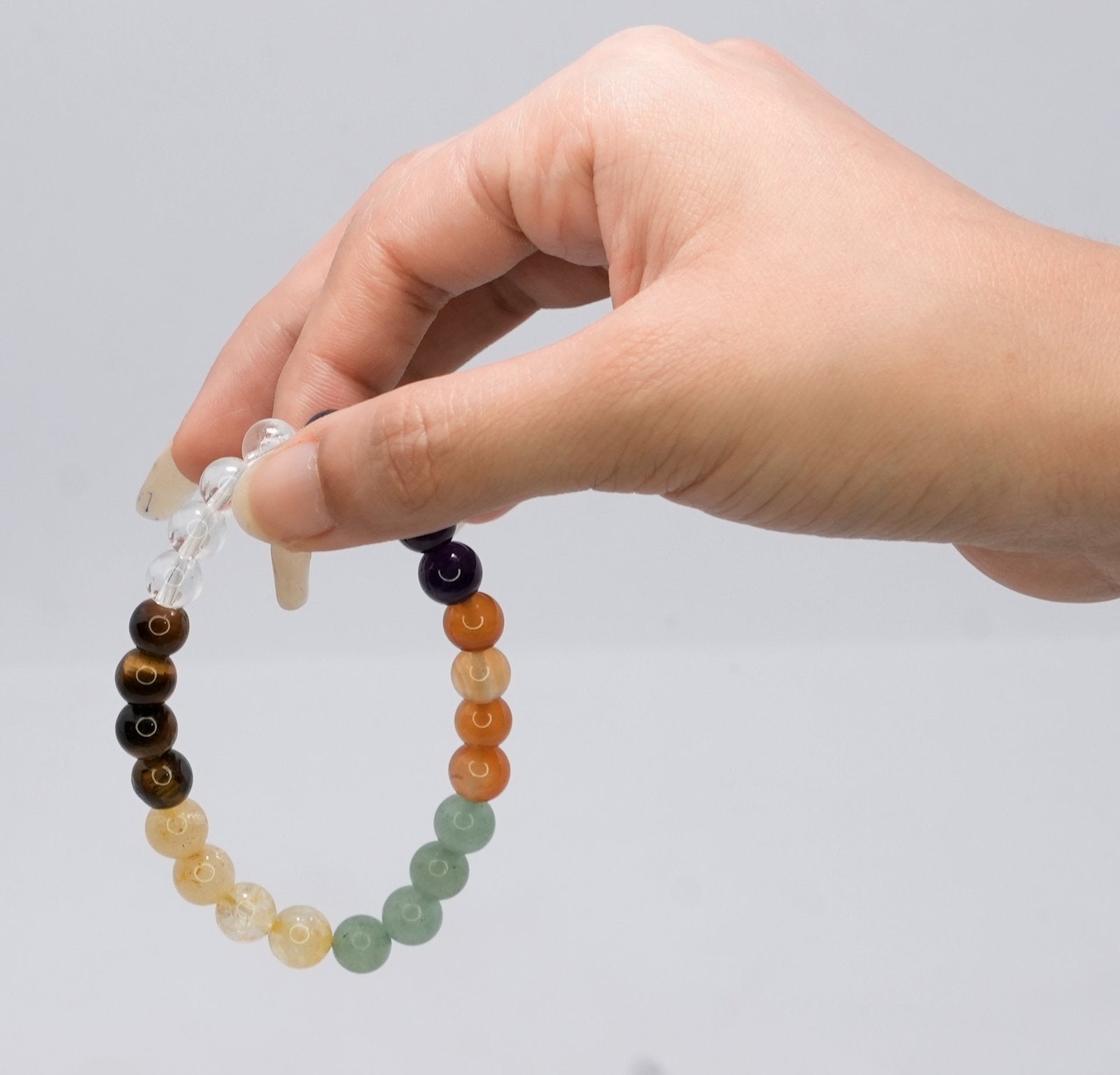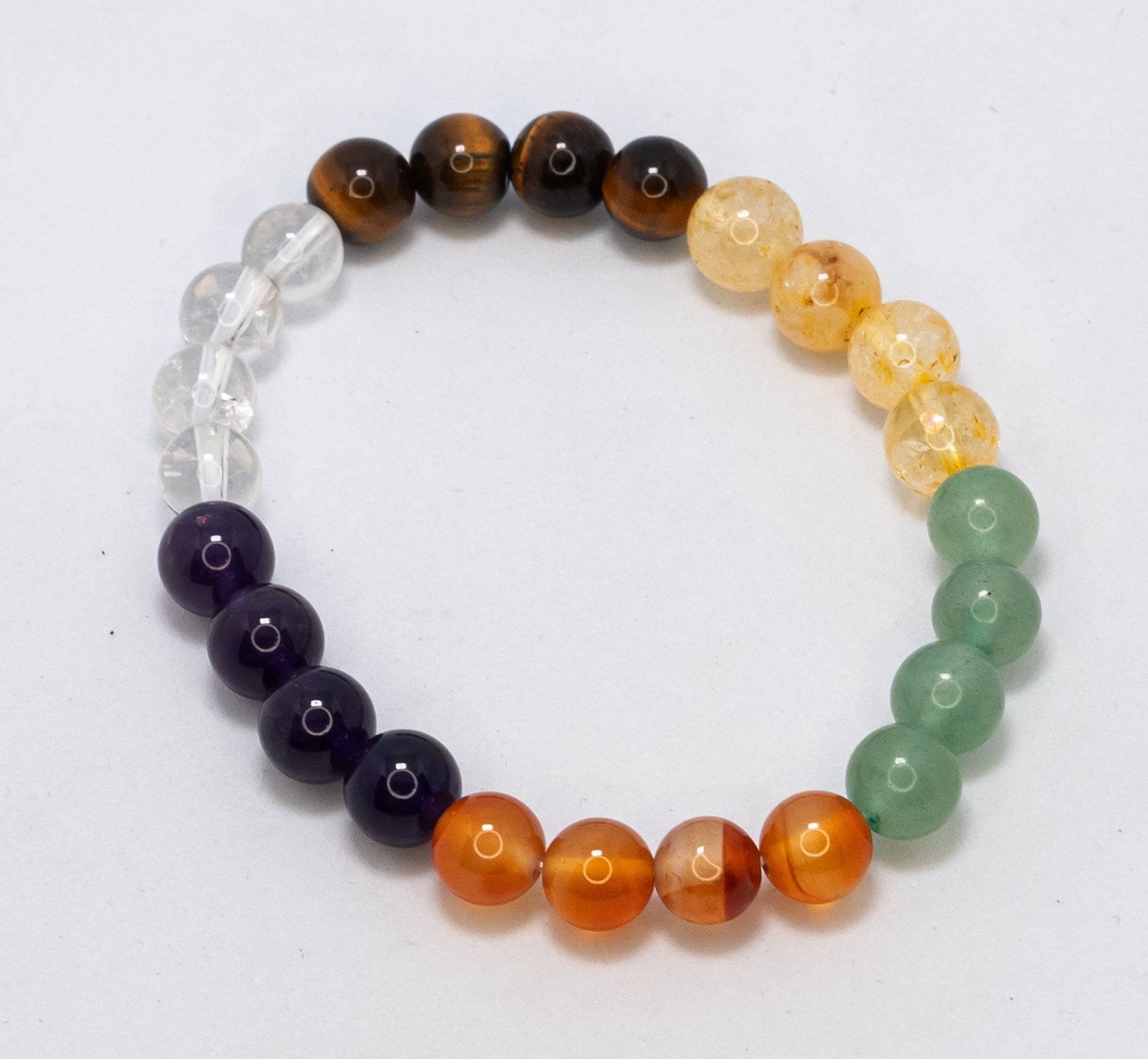 Citrine: Radiates warmth and joy, boosts self-confidence, attracts abundance, and clears negativity to support goal achievement. \nGreen Aventurine: Known as the Stone of Opportunity, it invites prosperity, encourages optimism, and supports emotional healing and growth. \nCarnelian: Ignites passion and motivation, enhances creativity, restores vitality, and gives you the courage to take bold action. \nTigers Eye: Strengthens willpower and focus, offers protection, grounds scattered energy, and supports wise decision-making. \nClear Quartz: The Master Healer, it amplifies energy, improves clarity, supports manifestation, and aligns your intentions with purpose. \nAmethyst: Promotes tranquility and balance, soothes anxiety, enhances spiritual awareness, and helps create a calm, centered mind.