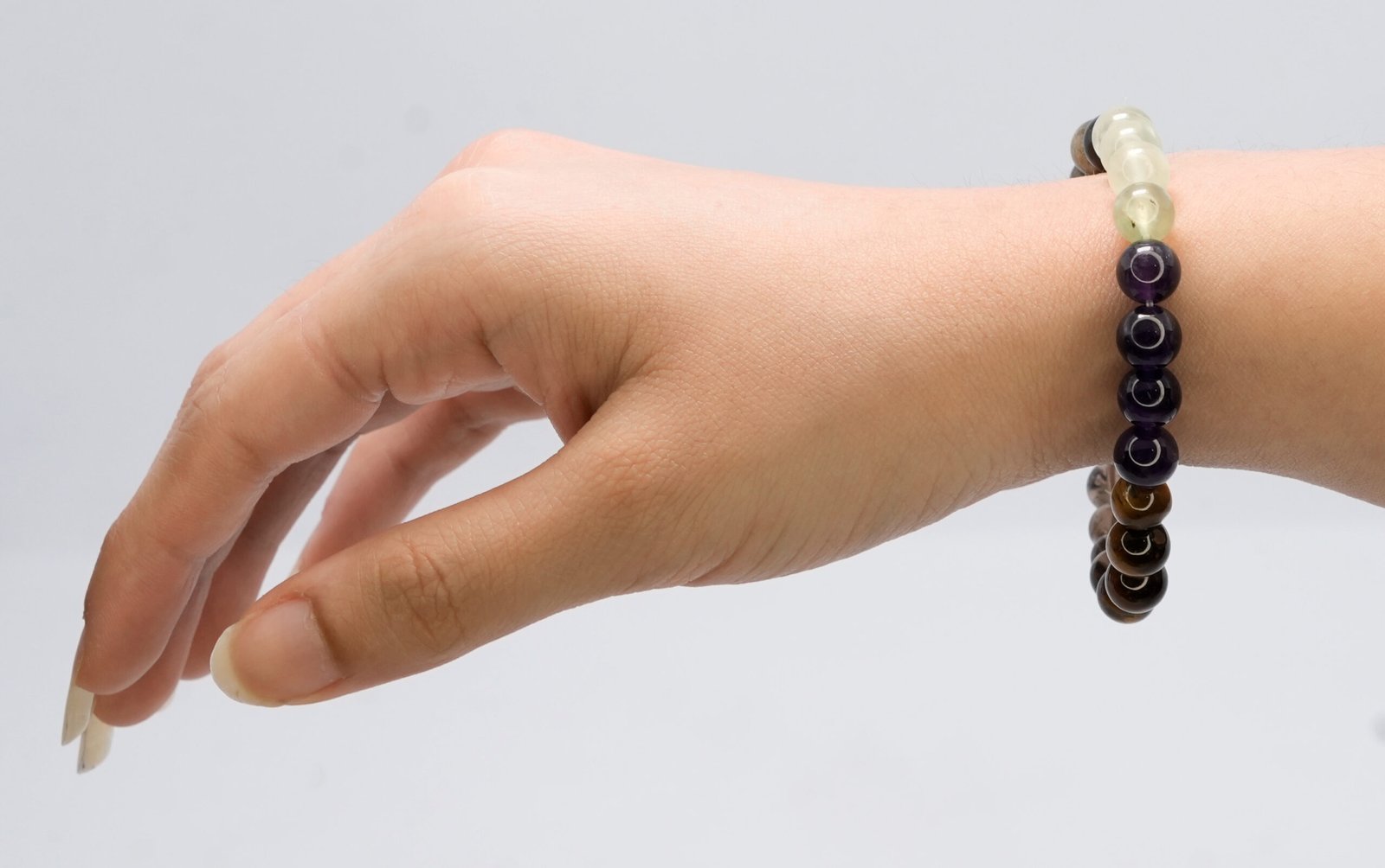 Amethyst: Relieves stress, promotes calmness, and brings emotional balance for a peaceful and centered mind. \nLabradorite: Protects against irrational fears, illuminates inner strength, and helps find clarity amid chaos. \nObsidian: Cleanses negative energy continuously, reflects harmful influences back to their source, and offers strong spiritual protection. \nTiger Eye: A stone of vitality and courage, it provides protection, boosts confidence, and enhances personal integrity. \nSmoky Quartz: Grounds and shields energy, helps dispel negativity, and promotes emotional stability and resilience. \nPrehnite: Fosters compassion and sympathy, while protecting you from absorbing the negativity of others.