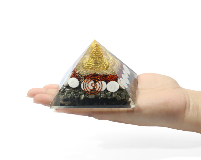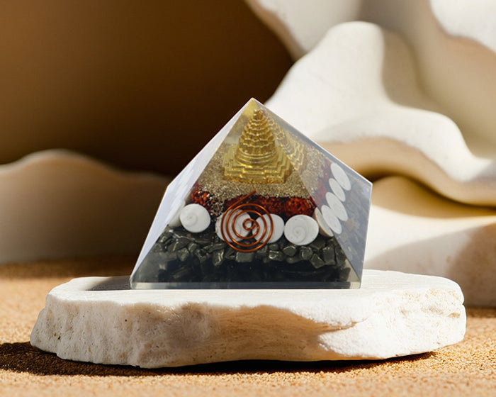 The Shree Yantra Gomti Chakra Pyramid (Known as Laxmi Pyramid) is revered for ushering in wealth and harmony, serving as a powerful talisman for prosperity and spiritual elevation in any setting. The Shree Yantra Gomti Chakra Pyramid, also known as the Laxmi Pyramid, is revered for ushering in wealth, harmony, and spiritual elevation. Serving as a powerful talisman, this pyramid is intricately crafted using authentic crystals, each charged by a Tibetan singing bowl to enhance its vibrational energy. Designed with precision, it features a blend of high-quality resin, sacred metals, and energized gemstones, ensuring both aesthetic appeal and spiritual potency. Whether placed in your home, office, meditation space, or altar, this Shree Yantra crystal pyramid radiates divine energy, helping you attract prosperity and inner peace.