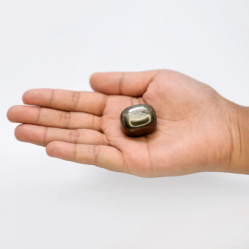 Pyrite, often referred to as "Fool"s Gold," is more than just a metallic-looking crystal"it"s a symbol of strength, protection, and abundance. Known for its ability to attract prosperity and shield against negative energy, Pyrite supports clear thinking, motivation, and assertiveness. It"s especially useful when you're working towards goals or need a boost in confidence and decision-making. \n \nOur Pyrite Tumble is small, sturdy, and full of vibrant energy. Carry it in your pocket during work, meetings, or important tasks to stay mentally sharp and energetically protected. You can also place it on your desk or in your workspace to invite success and stability. Whether you're building something new or navigating daily challenges, Pyrite is a powerful stone that reminds you to lead with confidence and clarity.