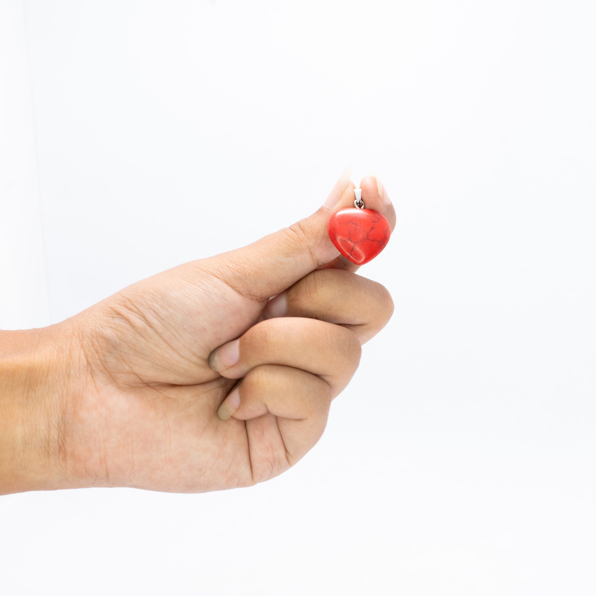 Red Howlite is known for its grounding and calming properties. It helps cool down emotional stress, control anger, and promote a sense of patience and focus. The vibrant red color adds a layer of energy and passion, making it a great companion for emotional balance with a bold spirit.Shaped as a heart, this pendant is a reminder to stay strong yet soft—balanced from within. Whether worn during stressful days, while meditating, or simply as a statement piece, it supports emotional stability while keeping your energy bold and grounded.Perfect for everyday wear or gifting to someone who needs a little calm with courage.