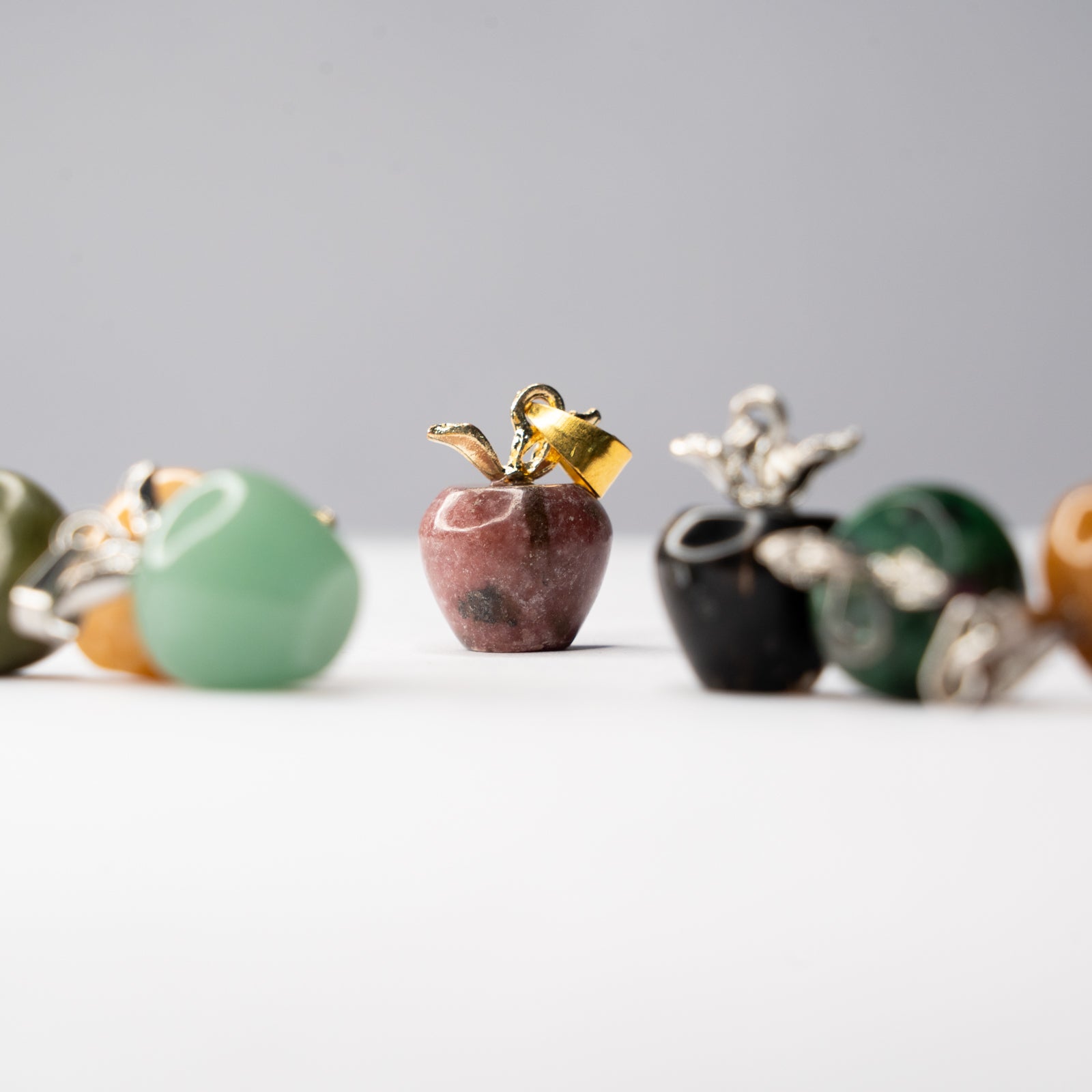 \nThis beautiful pink-and-black gemstone is closely linked to the heart chakra, encouraging love, empathy, and harmonious relationships. The apple shape adds a sweet, symbolic touch—making it both a meaningful accessory and a thoughtful gift for those on a journey of self-love or emotional healing.