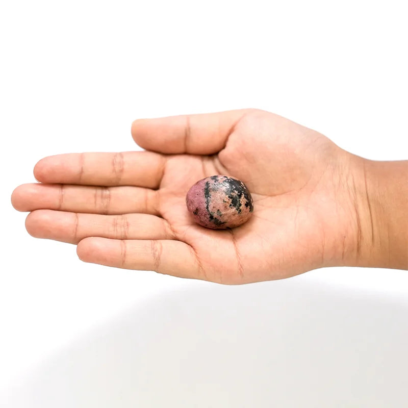 Rhodonite is a striking pink and black stone, cherished for its ability to heal emotional wounds and promote self-acceptance. Often called the "Stone of Compassion," it helps to clear emotional scars, foster forgiveness, and strengthen personal relationships. Rhodonite encourages the release of resentment and builds resilience, making it ideal for anyone looking to move forward with grace and kindness. \n \nOur Rhodonite Tumble is smooth, polished, and compact, allowing you to carry its healing energy with you wherever you go. Whether you"re processing difficult emotions or simply want to cultivate a more compassionate mindset, this tumble serves as a comforting presence. Keep it in your pocket, on your bedside table, or in a special place where you can reflect on letting go of past hurts and embracing a brighter, more loving perspective.