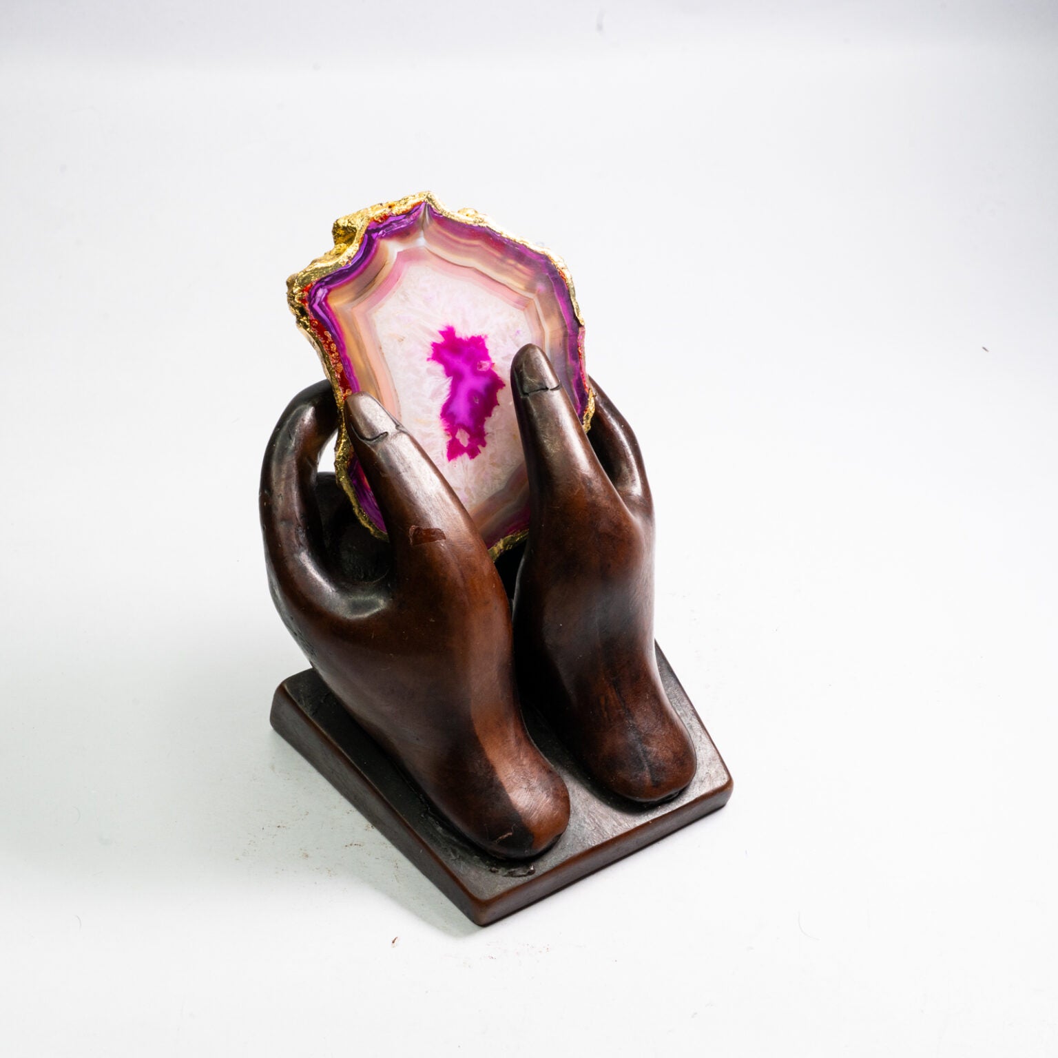 This rose quartz agate slice combines two beautiful stones. You can see soft pink colors of rose quartz flowing through the unique, banded patterns of agate. It’s a lovely piece that feels both gentle and strong.