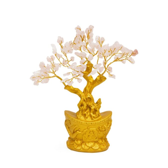Rose Quartz Golden Tree. Handcrafted with genuine rose quartz crystal chips, each branch is delicately wired with elegant golden metal, creating a beautiful balance of spiritual energy and luxury décor.