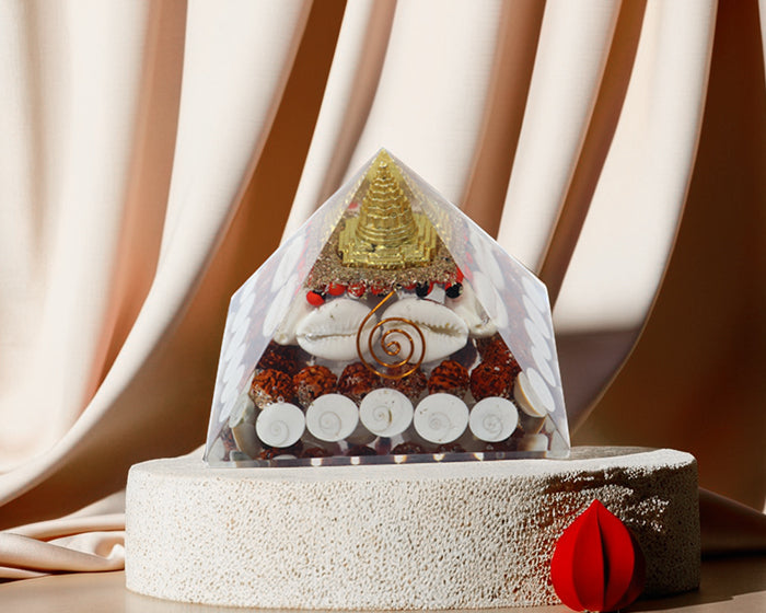Discover the profound energies of our Shree Yantra with Gomti Chakra Pyramid. The sacred geometry of the Shree Yantra symbolizes abundance and spiritual harmony, while the Gomti Chakra brings prosperity and positive vibrations. Meticulously crafted into a pyramid, this divine piece balances energies, invokes blessings, and serves as a powerful tool for meditation and manifestation. Rudraksha beads are considered sacred in Hinduism and are believed to enhance spiritual growth. It is thought to harmonize and amplify energy. Gomti Chakra is considered auspicious and is believed to bring good luck, prosperity, and positive energy.