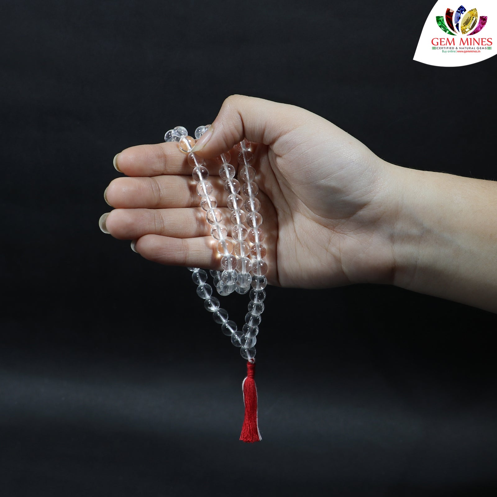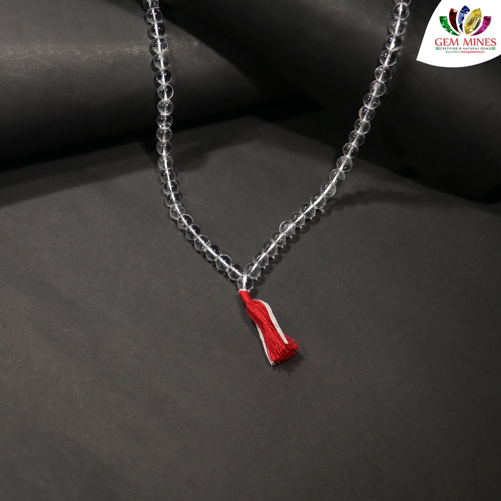This Sphatik Jaap Mala (108+1) is made of clear, radiant sphatik (quartz) beads, known for their natural cooling and purifying properties. Sphatik is considered one of the most powerful stones for spiritual practices, believed to calm the mind, dispel negative energy, and enhance focus during prayers or meditation.