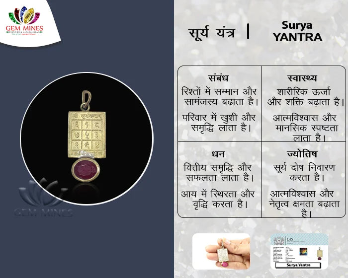 Beautiful (Original) Surya Yantra.Free Horoscope & Free Pundit Ji Advise / Consultation. Original Natural Lab certified gems by IGI GTL / Birth stones / Large Gem Selection of shree shubh Rashi Ratan Vedic dhan at Gem Mines. May Bhagwan Brahma, Vishnu, Shiv & Universe bless you.