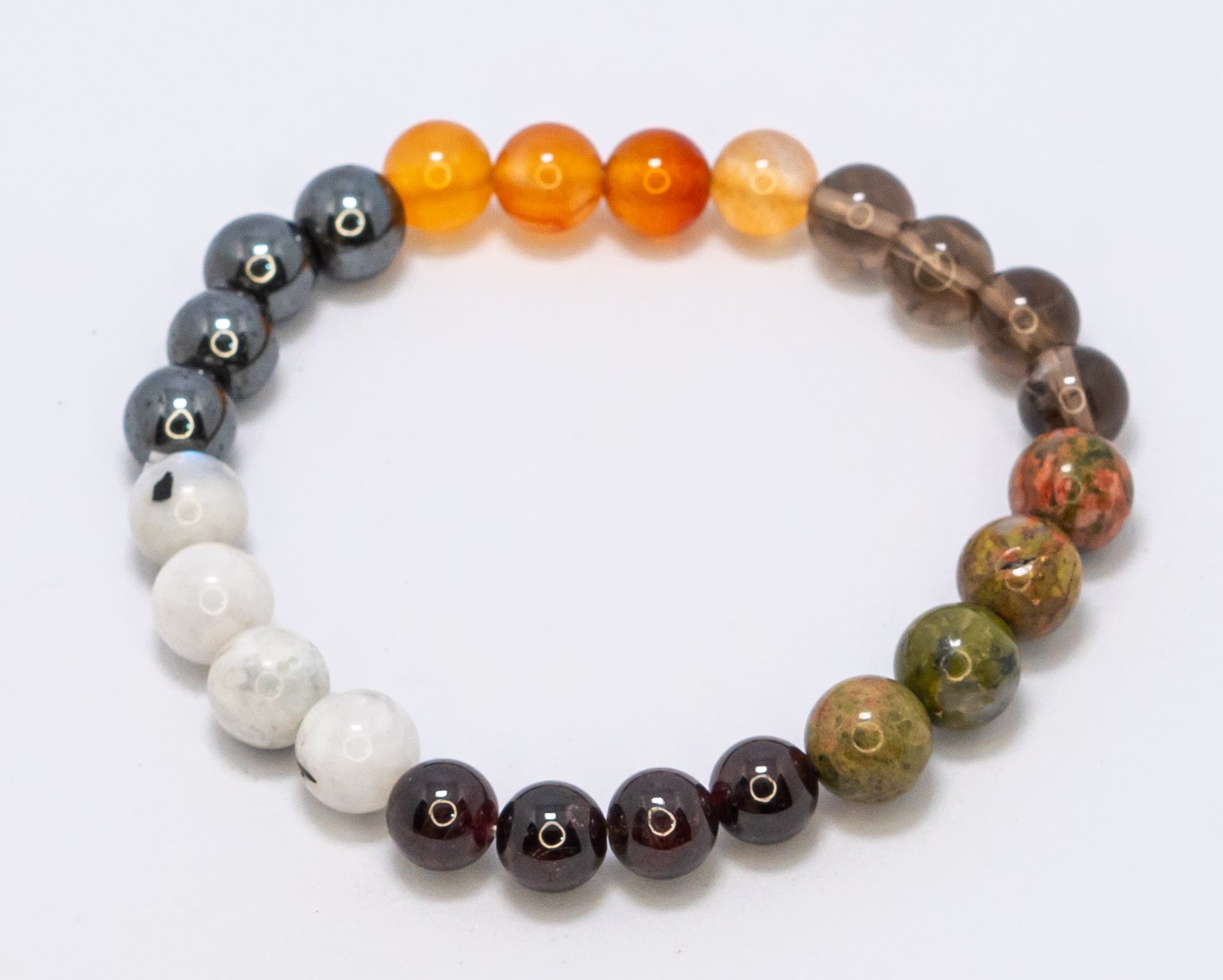 Unakite: improve your capability to gain weight by balancing the hormones and energies within your body. \n \nGarnet: Garnet can help you overcome emotions of anxiety and sadness. \n \nCarnelian: Works on your weight gain by stabilizing the hormones in body. \n \nHematite: reduce stress and worry. By slowing the bodys metabolism appropriately \n \nMoon Stone: Helping in Spiritual growth. Helps having a sound sleep. \n \nSmoky Quartz: Smoky quartz is primarily associated with grounding, protection, and cleansing negative energies \n \n \n \nThis is just a spiritual support - its not meant to replace any medical advice or treatment. \n \n