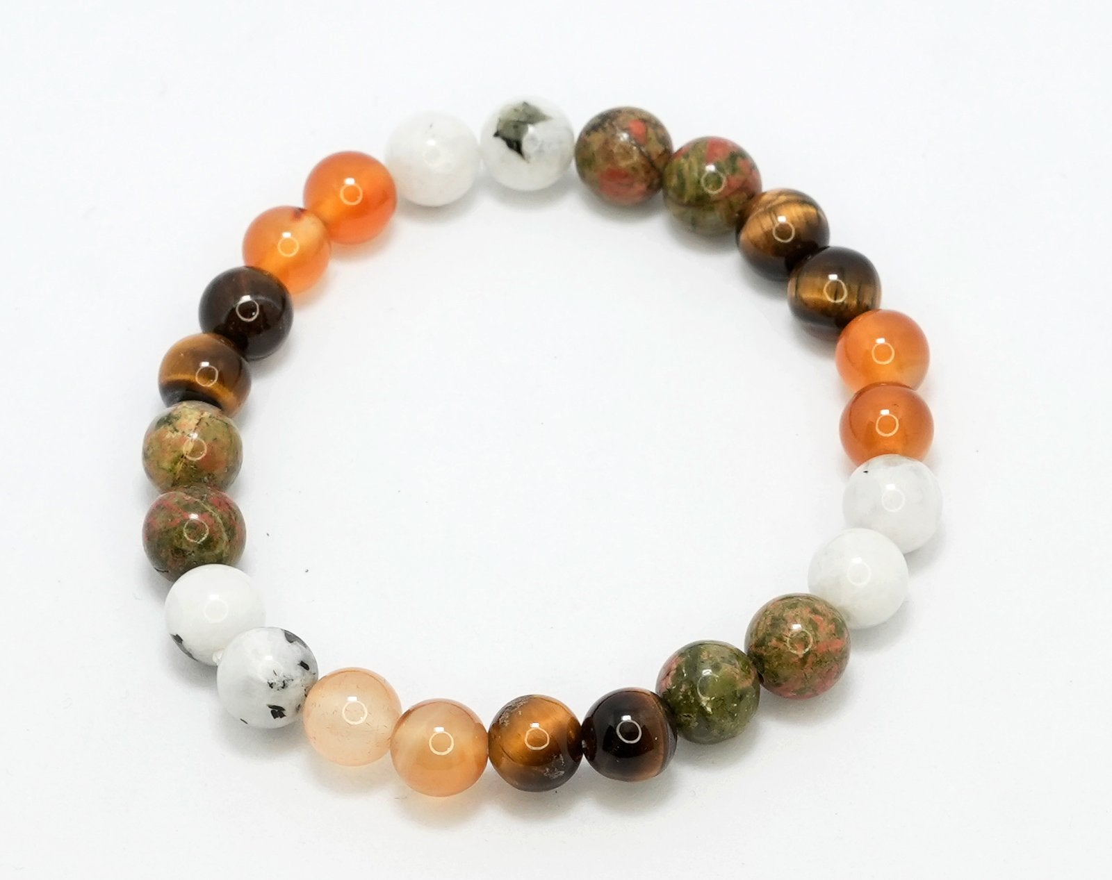 Carnelian:Boosts metabolism, enhances digestion, and increases appetite for healthy weight gain. \n \nUnakite: Improve your capability to gain weight by balancing the hormones and energies within your body. \n \nTigers Eye: Balances energy, supports strength, and enhances physical vitality for body nourishment. \n \nMoonstone: Regulates hormones, enhances nourishment, and supports emotional balance. \n \n \n \nThis is just a spiritual support - its not meant to replace any medical advice or treatment. \n \n